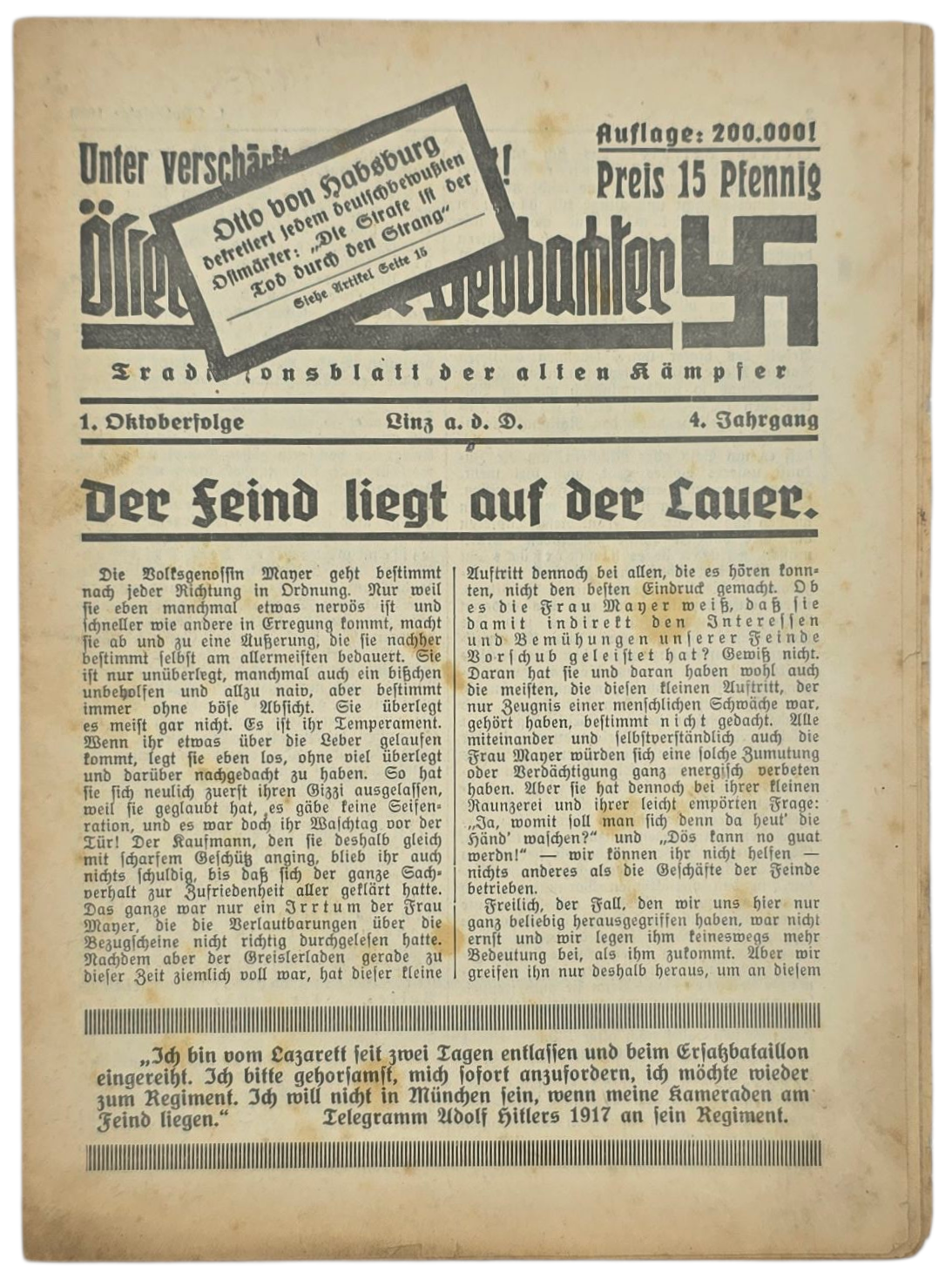 Kleine Duitse krant Österreichischer Beobachter uit 1939.