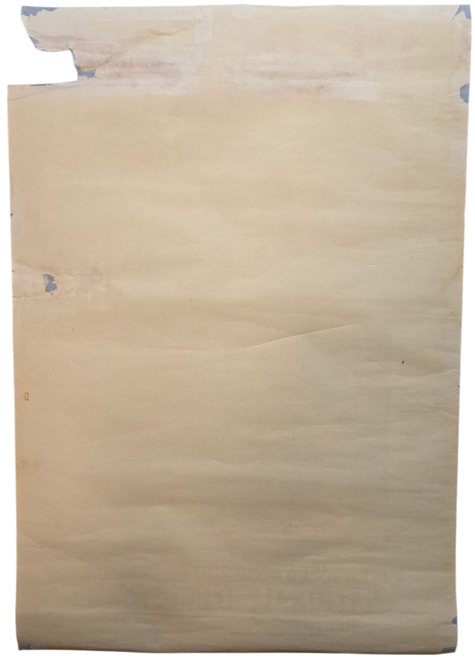 De poster heeft schade, dit is met zuurvrije tape gerepareerd en verstevigd.