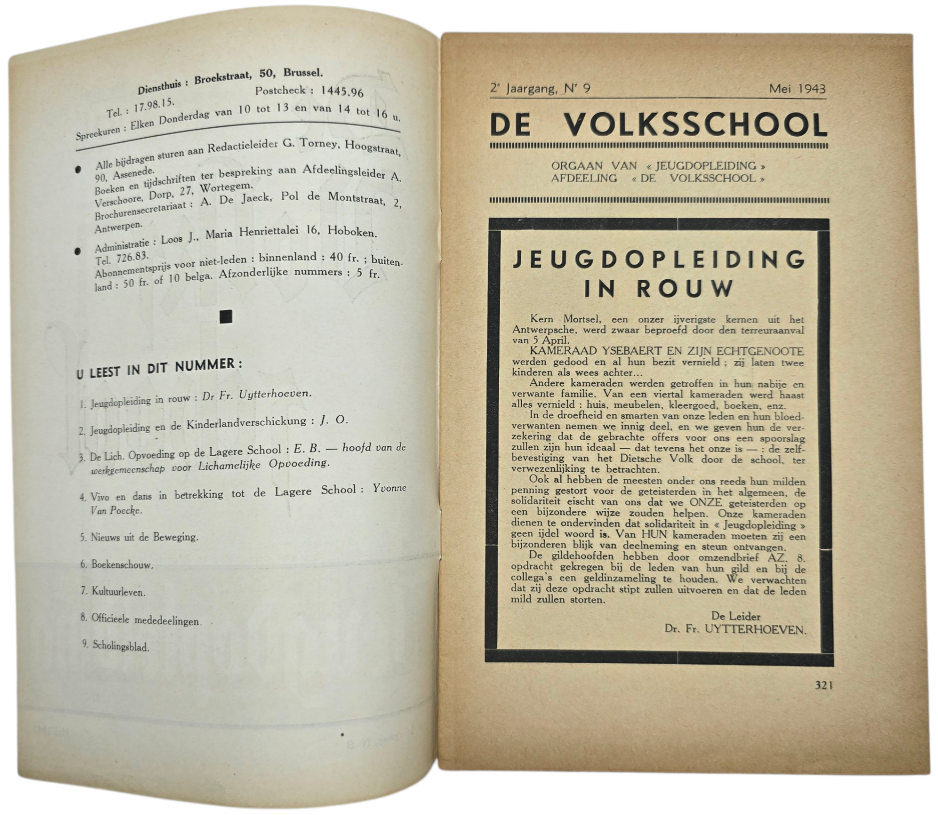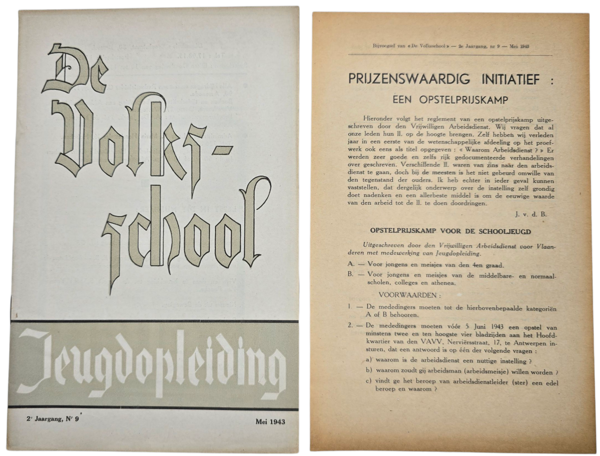 Original WW2 Flemish Collaboration Magazine - De Volksschool Jeugdopleiding 2nd year No. 9, May (1943)