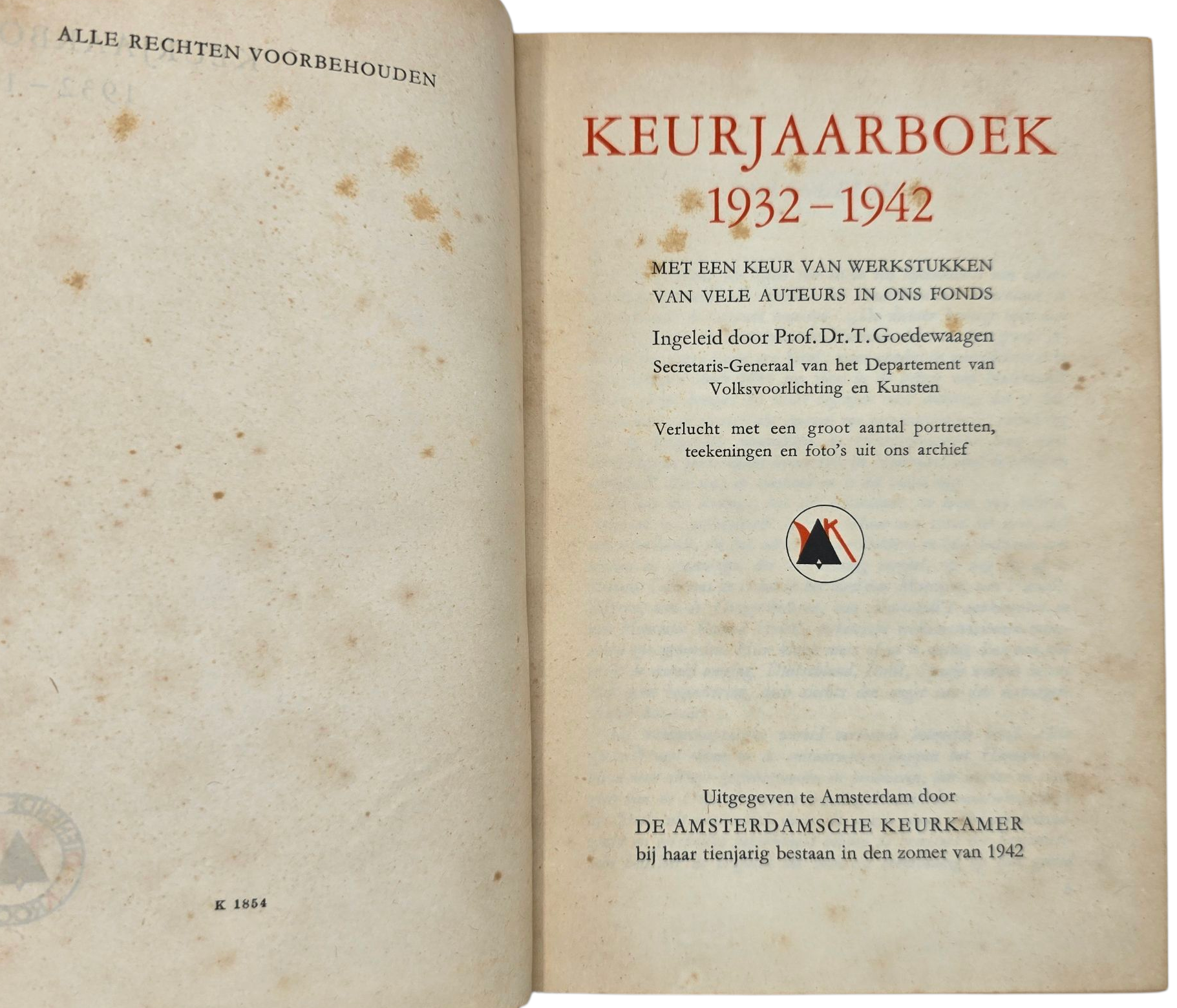Original WW2 Dutch Collaboration NSB Book - Keurjaarboek 1932-1942, Goedewaagen (1942)