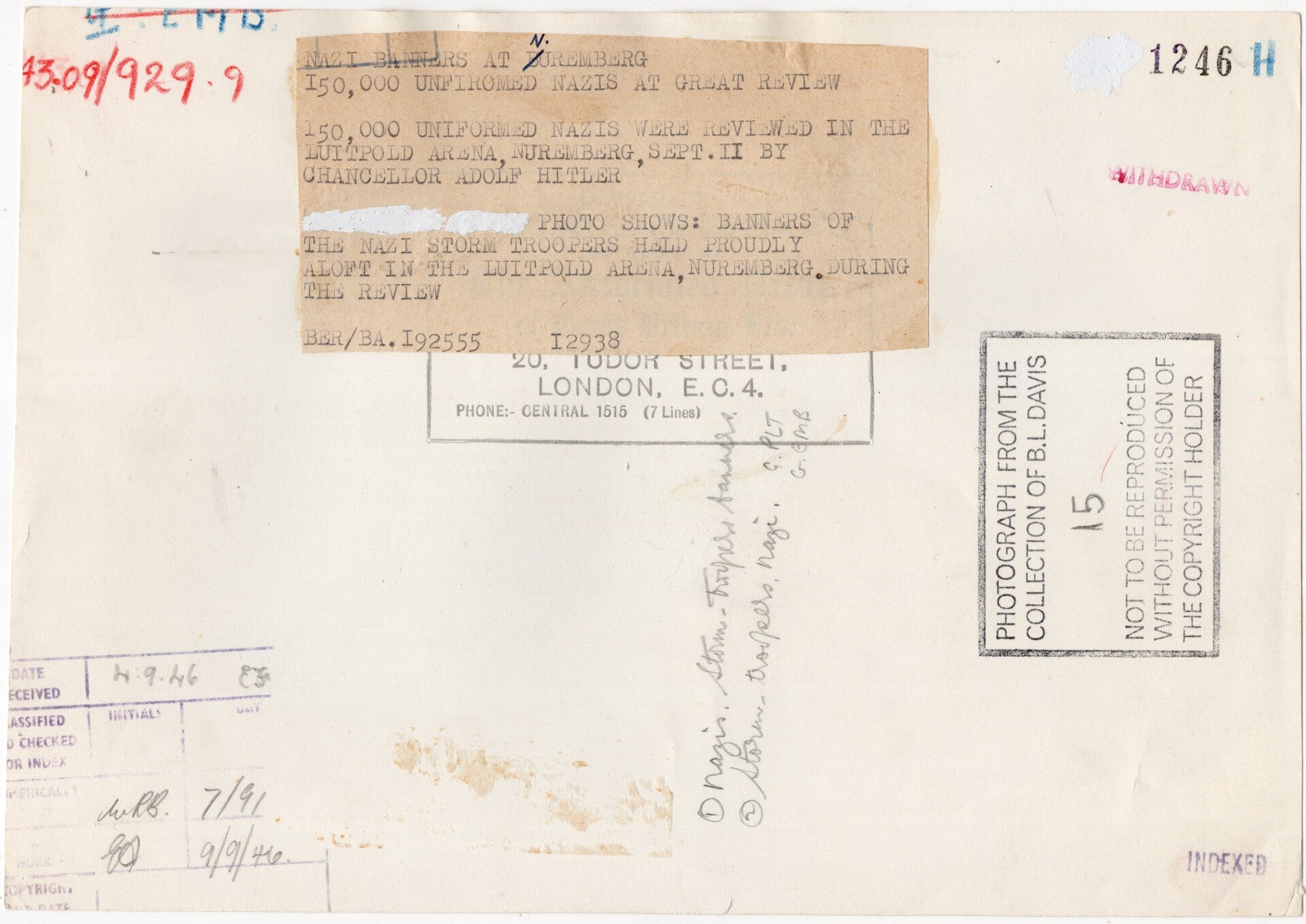 Original WW2 British Press Photo - German SA Deutschland Erwache flag bearers at Nuremberg during the Reichsparteitag