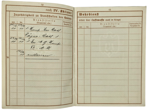Original WW2 German Document - Wehrpass Herne (1937)