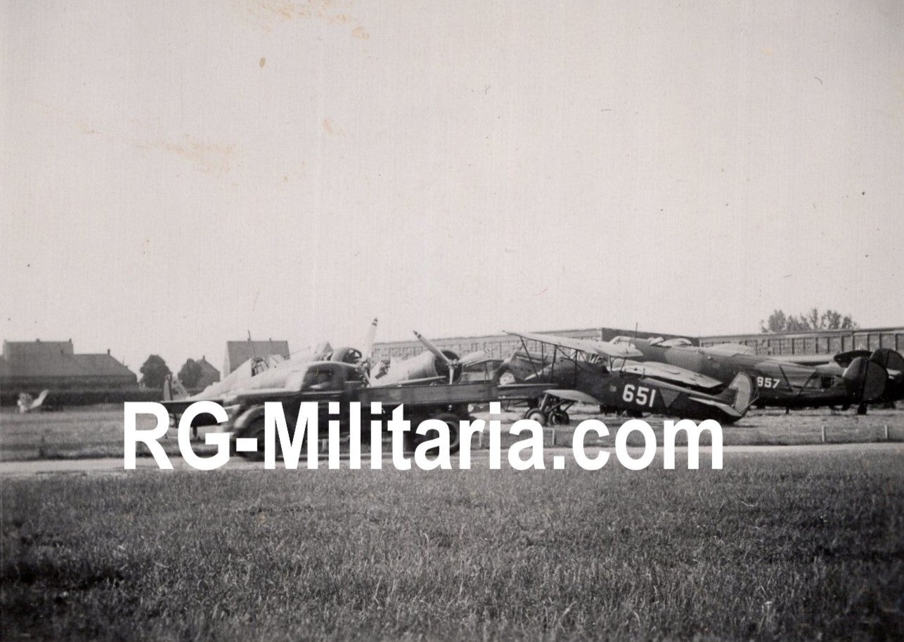 Originele Wo2 Duitse Foto - Nederlandse LVA Fokker vliegtuigen bij Schiphol Amsterdam (1940)