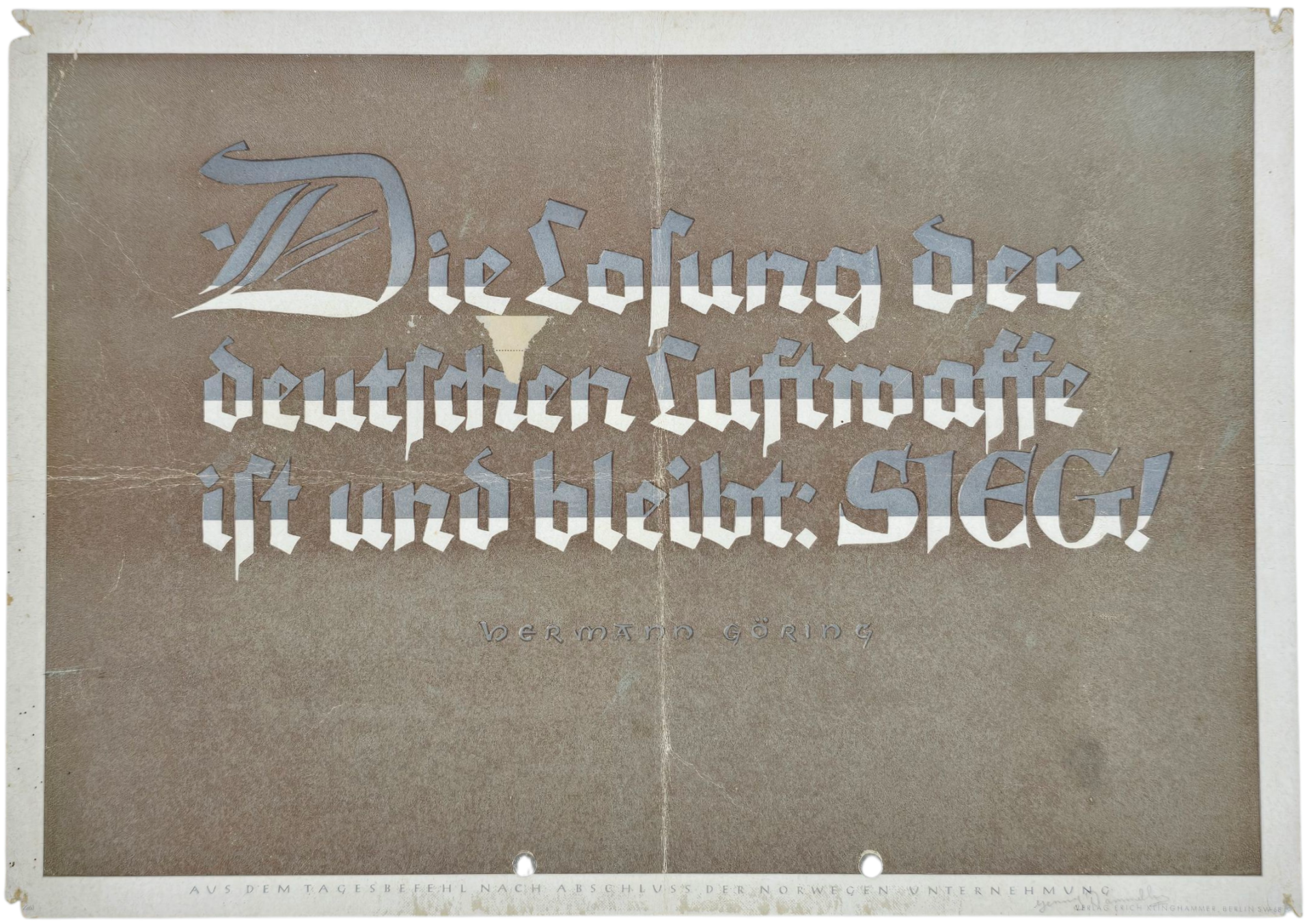 „Die Lösung der deutschen Luftwaffe ist und bleibt: SIEG! Hermann Göring''. Aus dem Tagesbefehl nach Abschluss der Norwegen-Unternehmung.