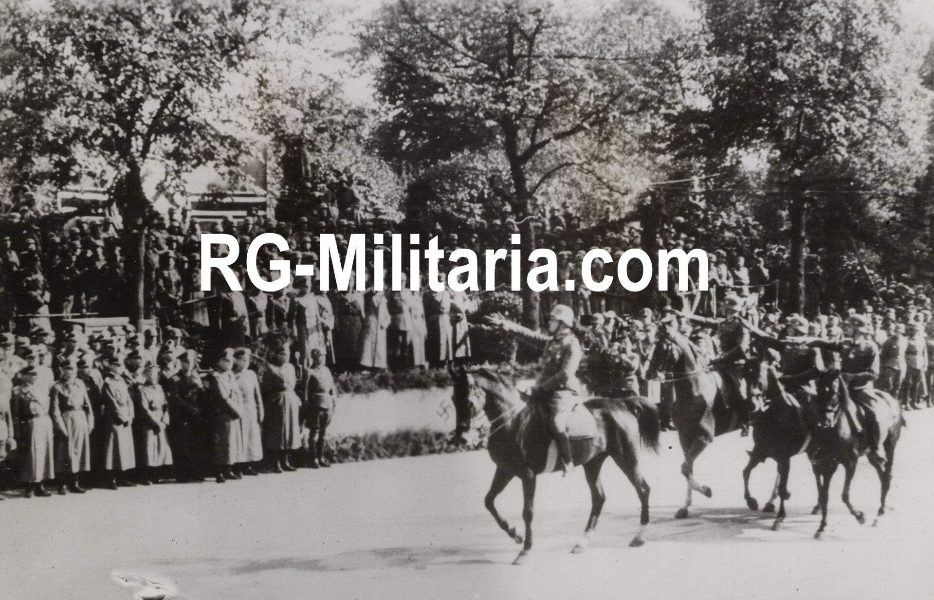 Originele Wo2 Britse Persfoto - Duitse cavalerie groet Adolf Hitler in Warschau (1939)