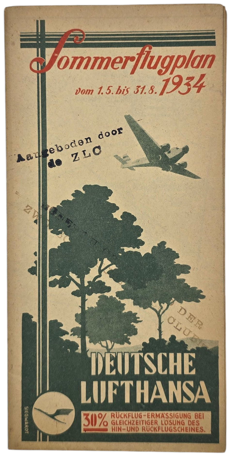 Original WW2 German Document - Deutsche Lufthansa Sommflugplan (1934)