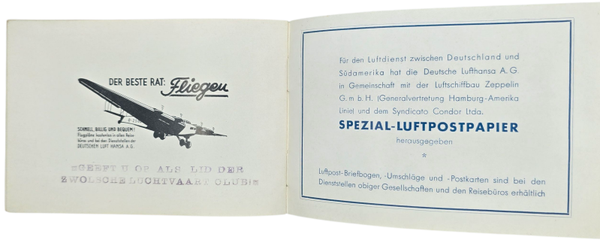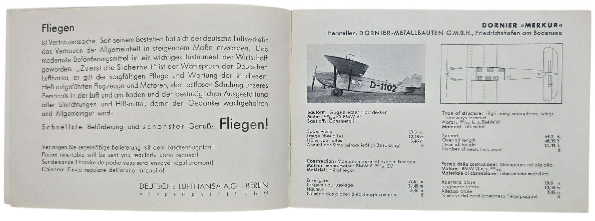 Brochure van de Luchtmaatschappij Deutsche Lufthansa met verkeersvliegtuigen, uit ca. 1928.