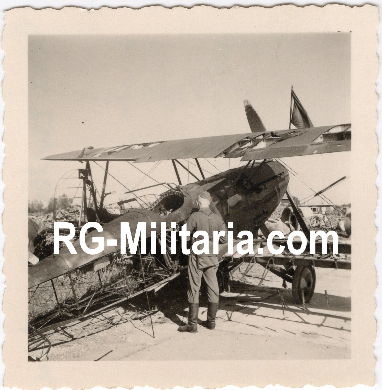 Originele Wo2 Duitse Foto - Buitgemaakte Nederlandse Fokker C.V. vliegtuig bij Schiphol, Amsterdam, Nederland (1940)