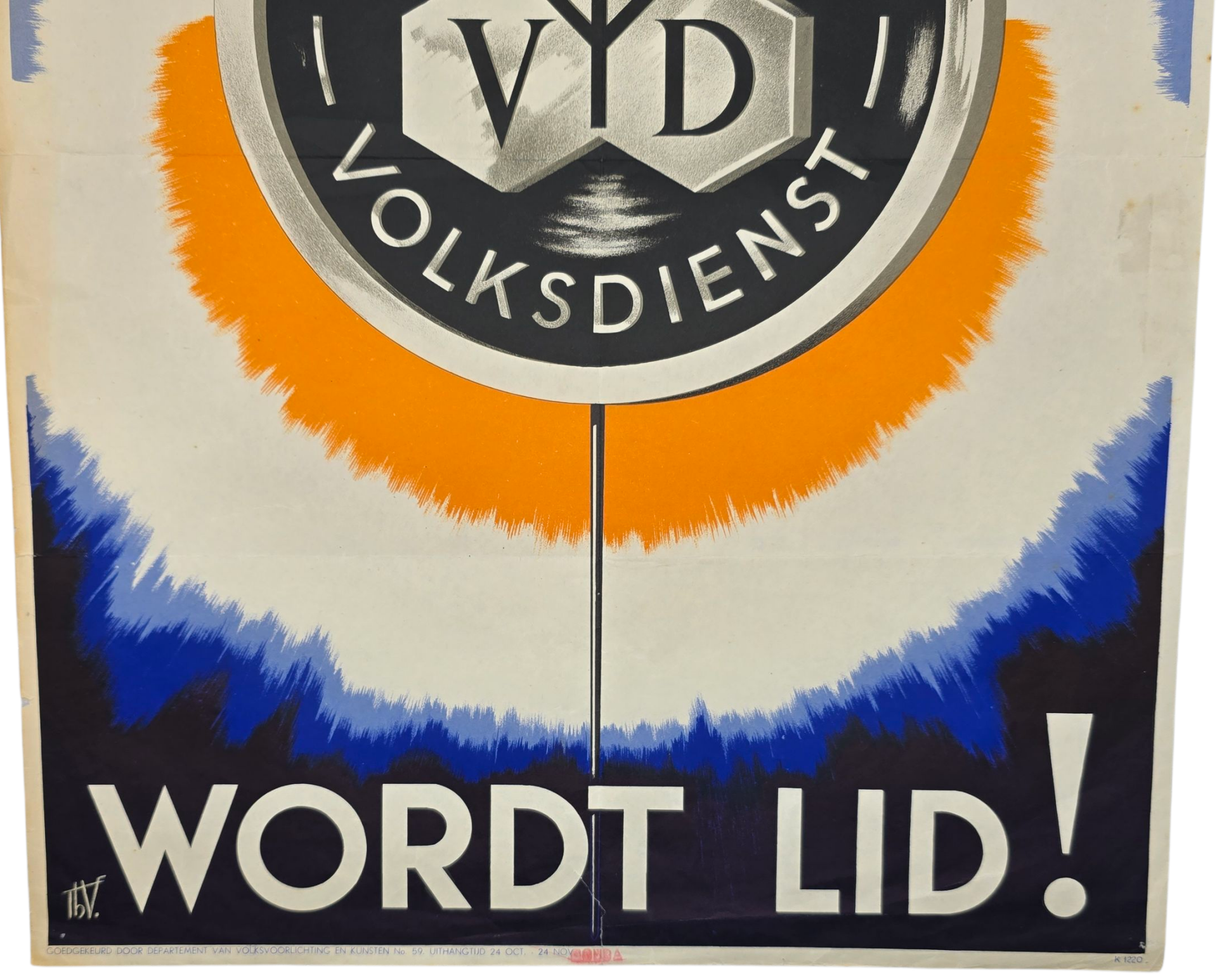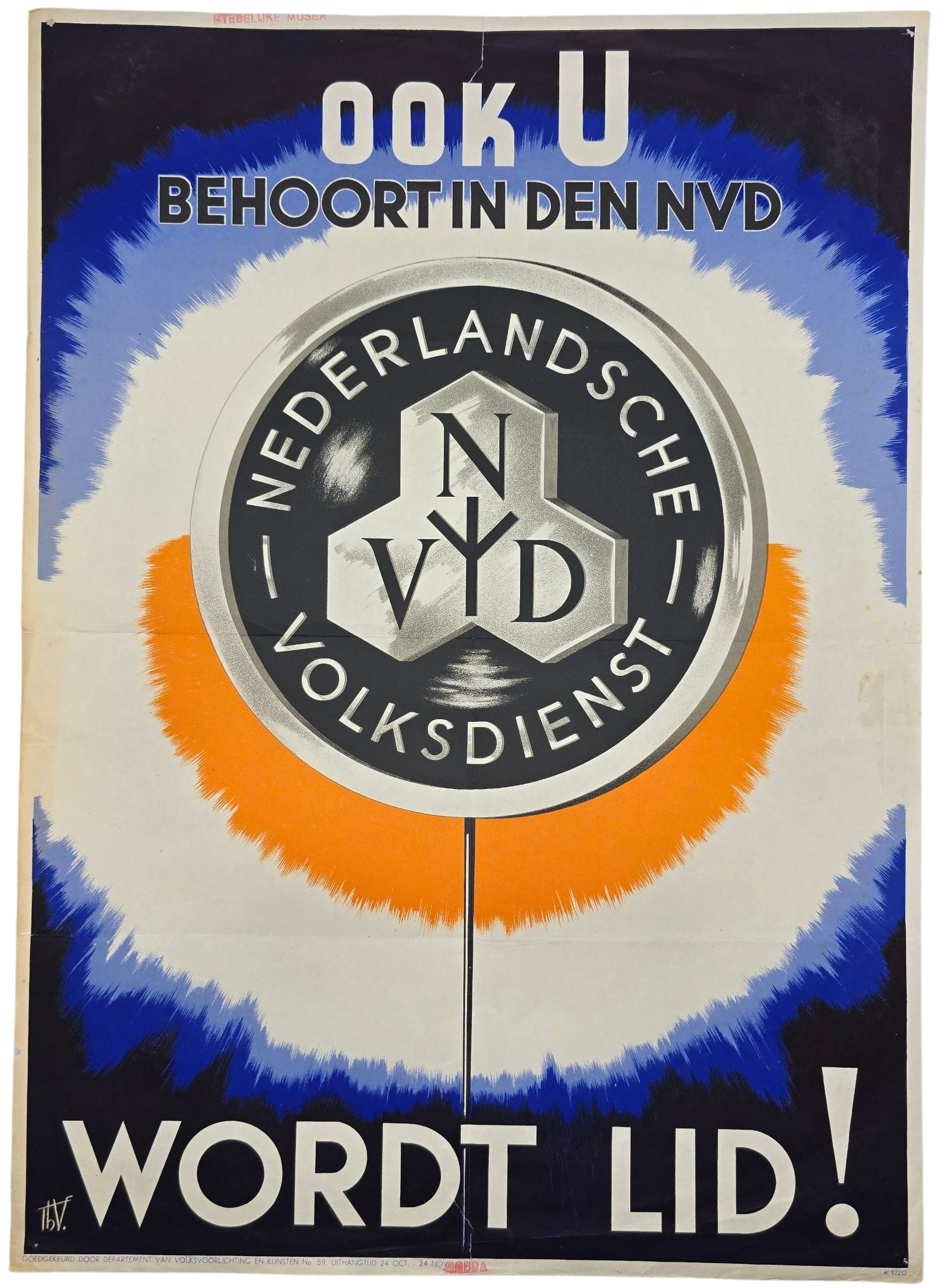 Original WW2 Dutch Collaboration NVD Poster - Nederlandsche Volksdienst Wordt lid! (1942)