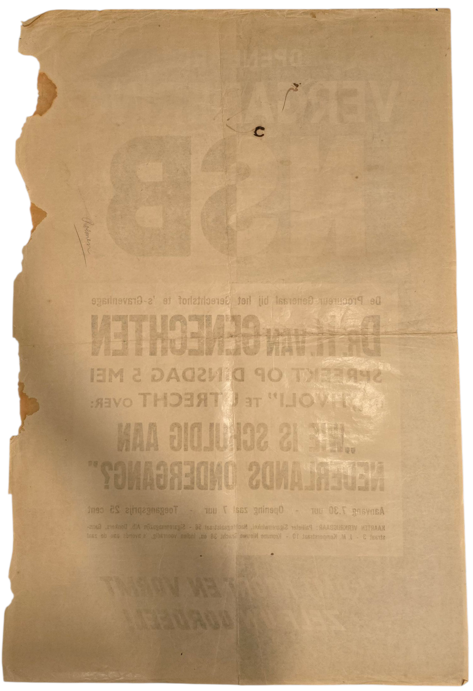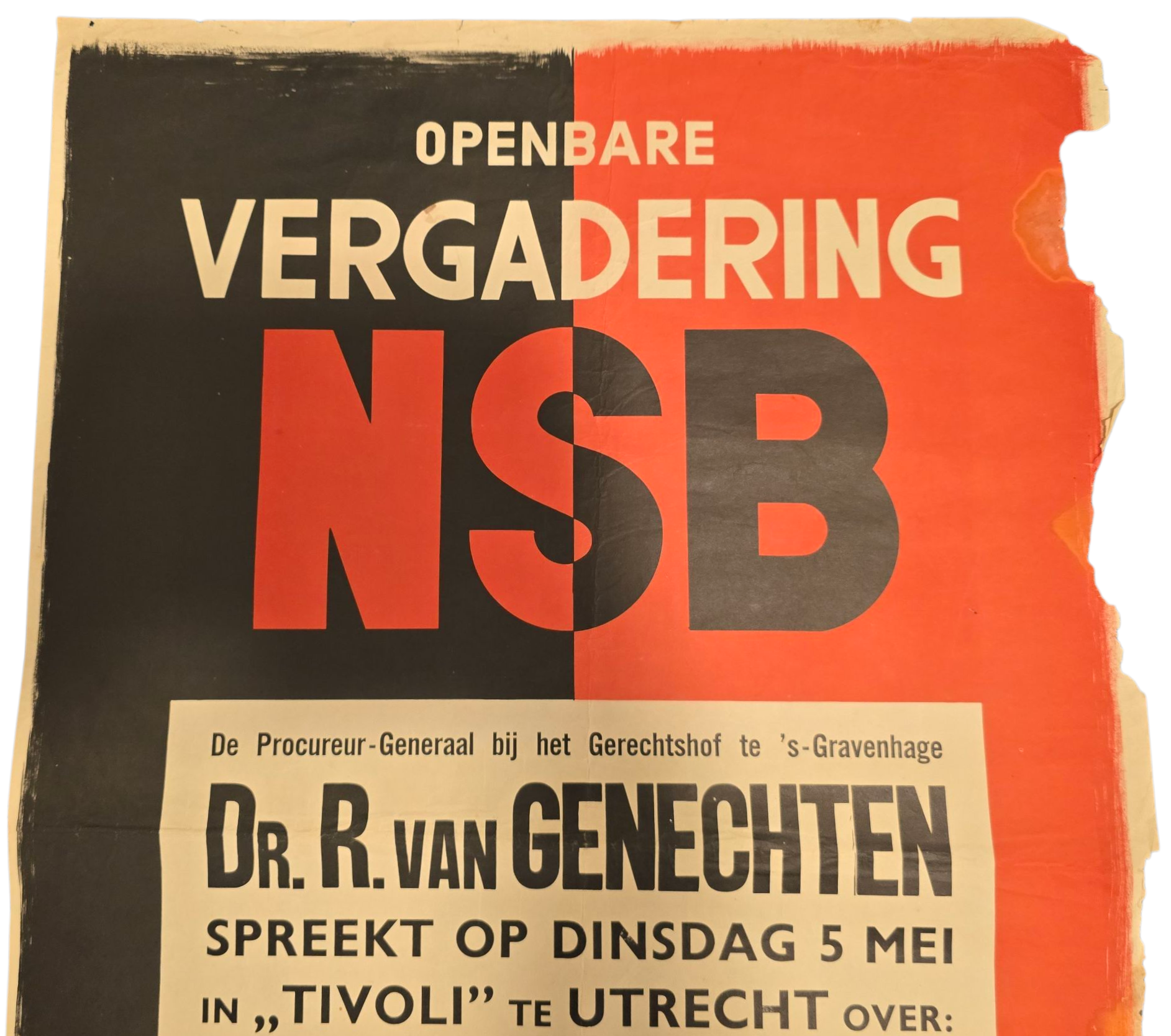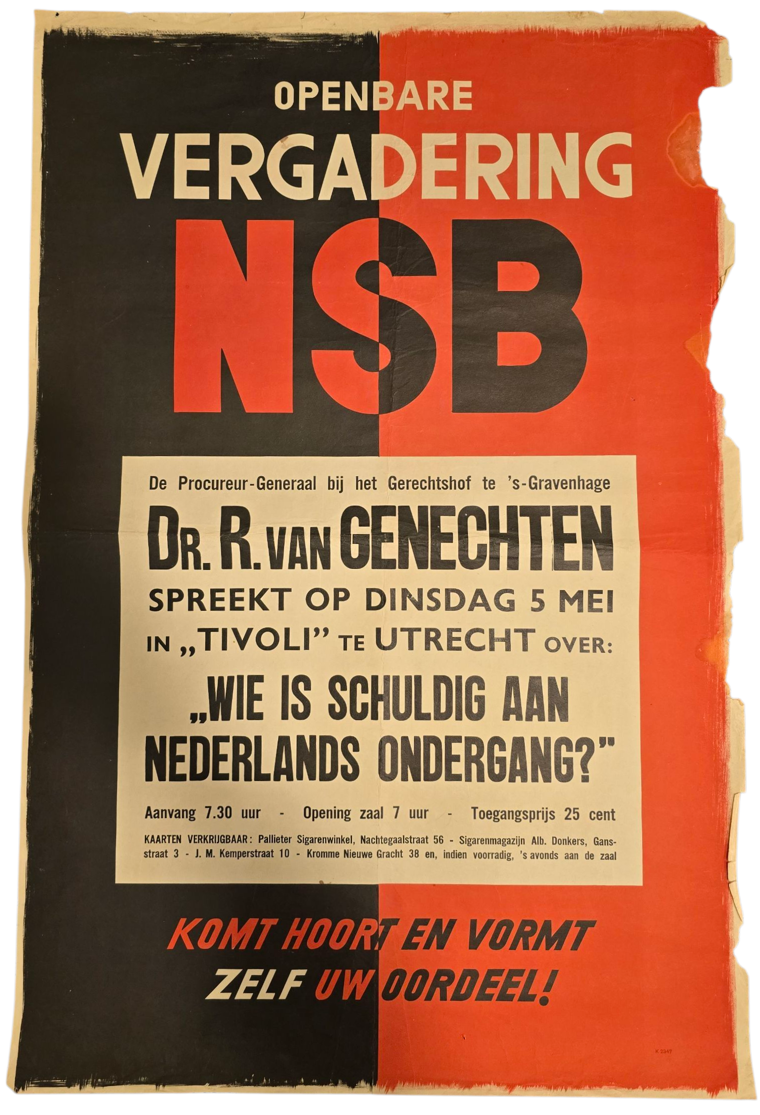Originele Wo2 Nederlandse Collaboratie NSB Poster - Openbare vergadering NSB R. van Genechten, Tivoli, Utrecht (1942)