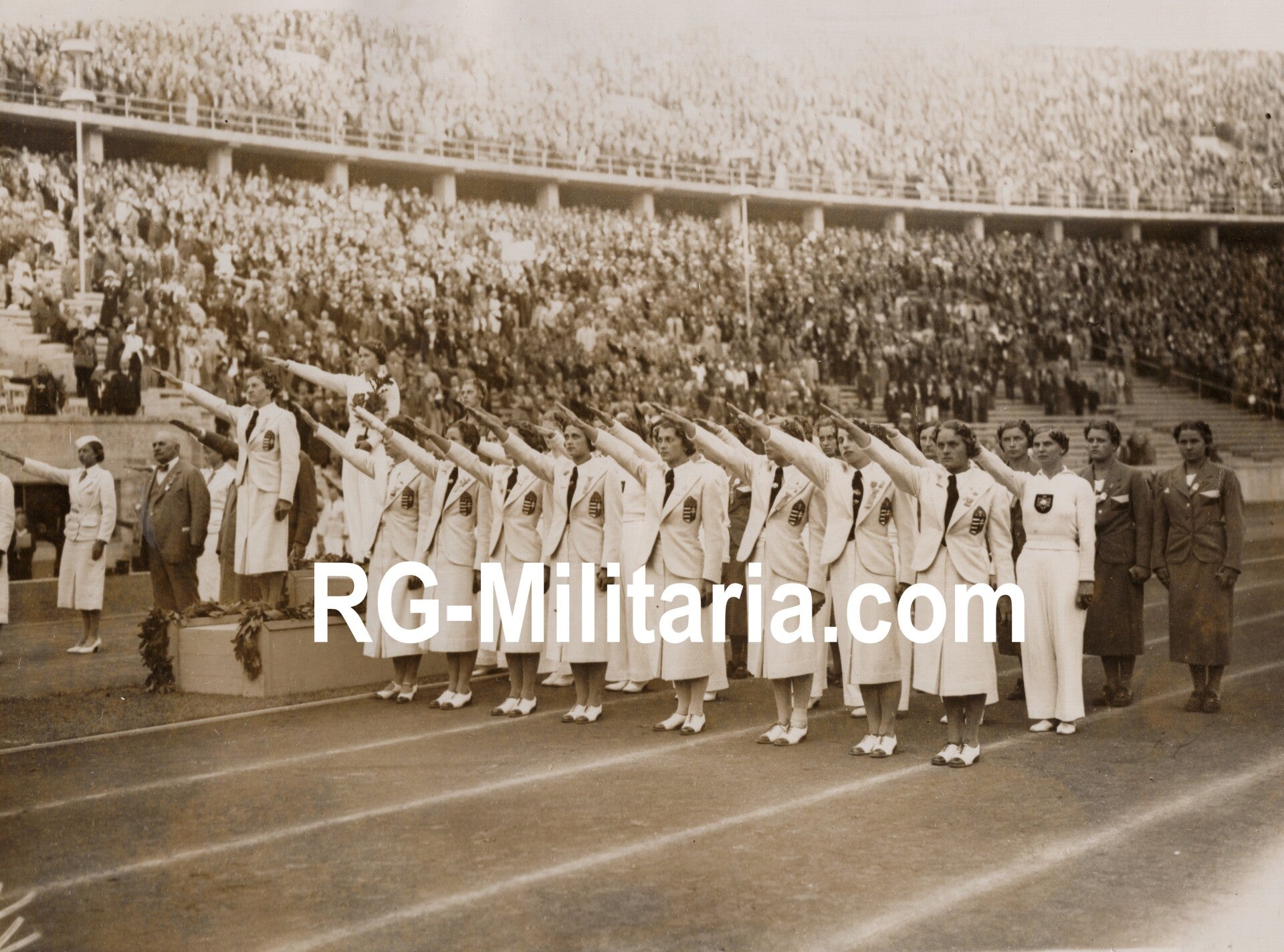 Original WW2 German Press Photo - Olympics, Olympic Games, Hungarian and German salute, Berlin (1936)