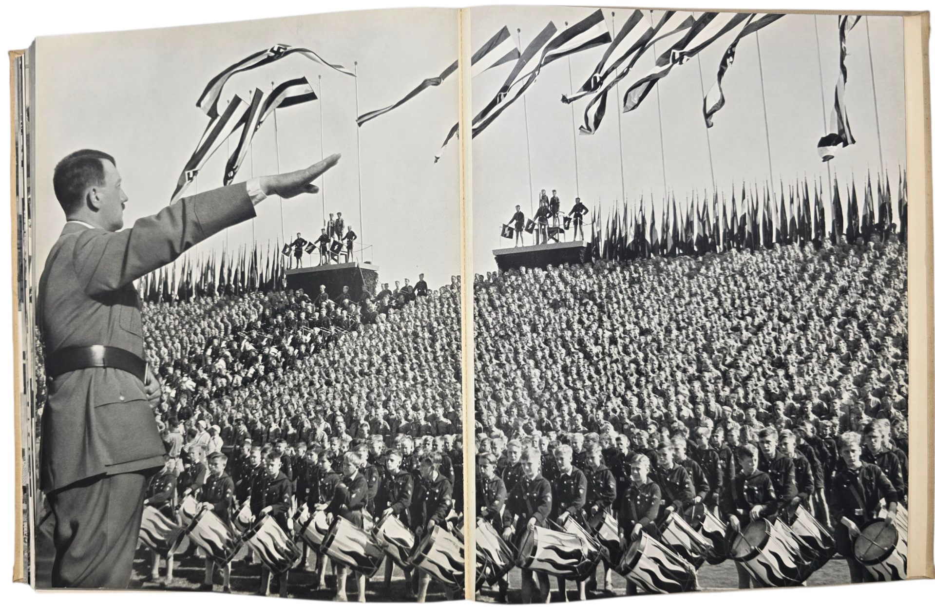 Zeer interessant fotoboek over Duitsland uitgegeven in 1936 vlak voor de Olympische Spelen. Dit boek werd gepubliceerd in het Duits, Frans en Engels en werd gemaakt om te propageren hoe ‘groot en sterk’ Duitsland onder nazi-heerschappij was. Het is een groot boek met veel afbeeldingen.
