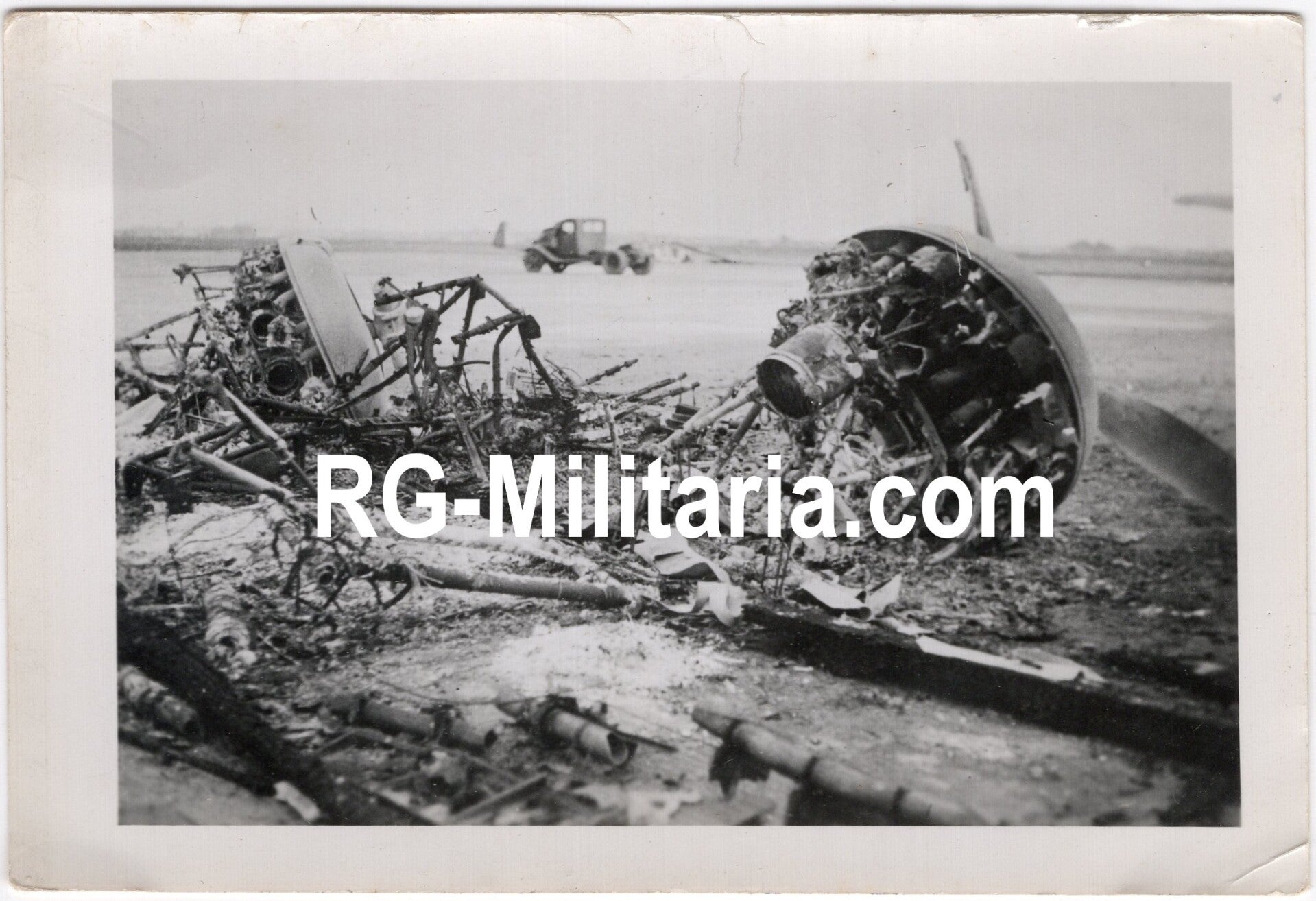 Originele Wo2 Duitse Foto - Gebombardeerde Nederlandse LVA Fokker G1 Wasp '333' op vliegbasis Bergen, Noord-Holland, mei (1940)
