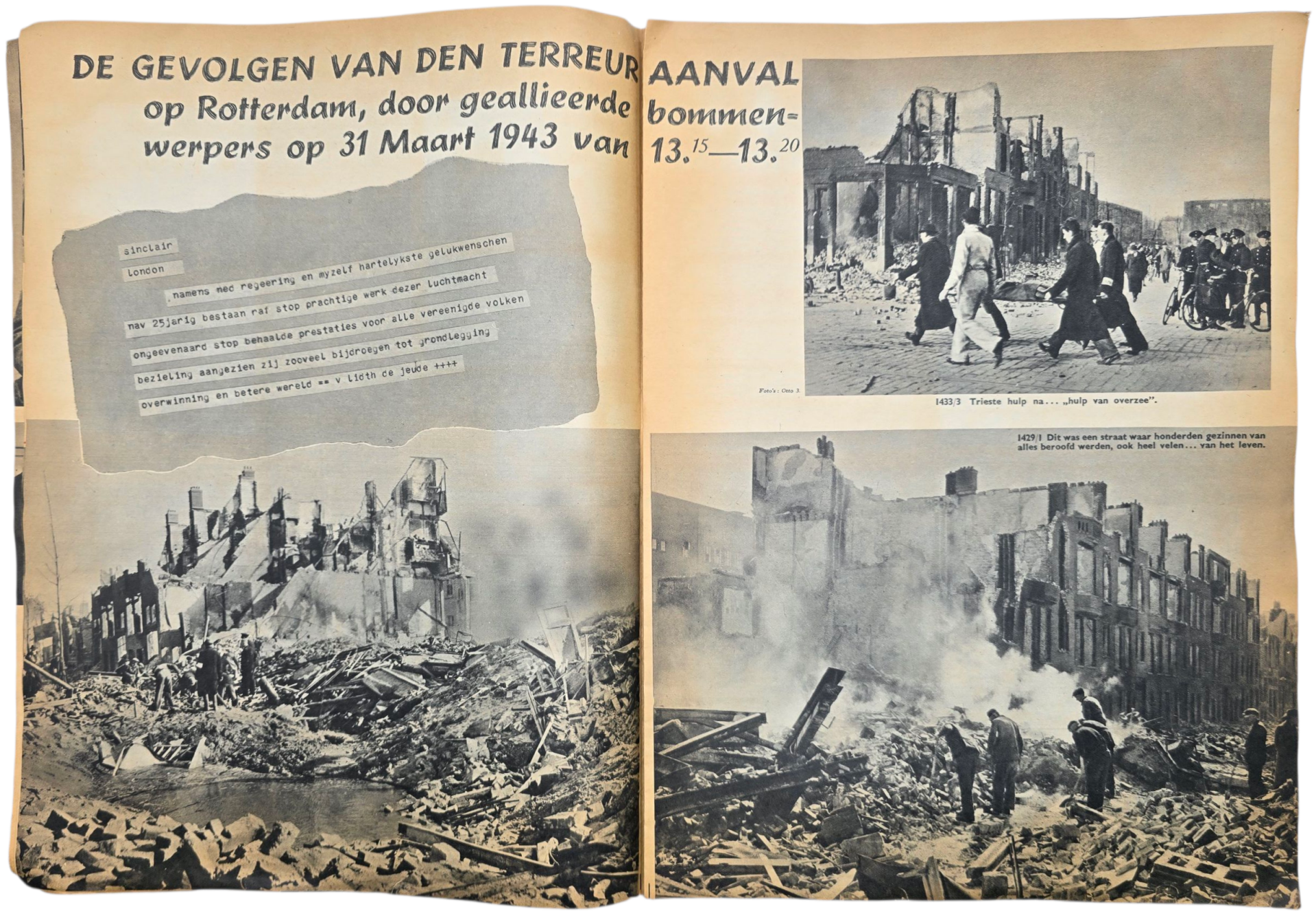 Original WW2 Dutch Collaboration NSB Magazine - Fotonieuws, 3rd year No. 4 ''Bombing of Rotterdam'' (1943)