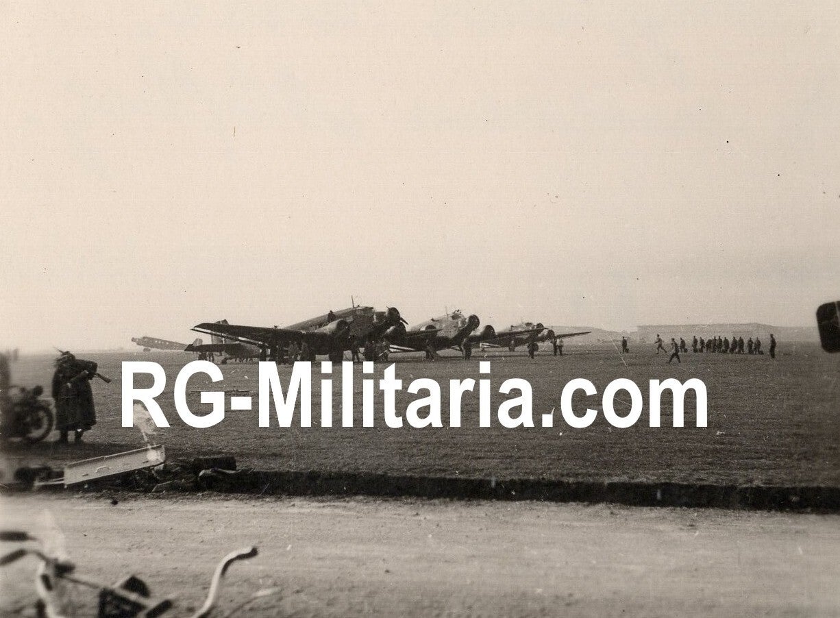 Originele Wo2 Duitse Foto - Junkers JU 52 vliegtuigen voor vertrek naar Nederland, vliegveld Werl (1940)