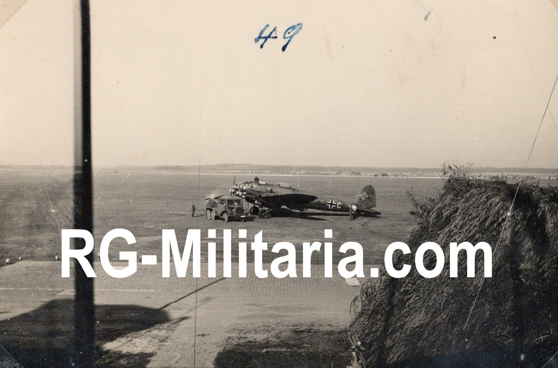 Interessante fotogroep van zes foto's van Alkmaar, Bergen aan Zee en de Fliegerhorst Bergen, die vanaf 1940 door de Luftwaffe werd gebruikt. Eén foto toont een Heinkel HE 111 van de Luftwaffe in Bergen voor gecamoufleerde gebouwen. Eén foto zit los.