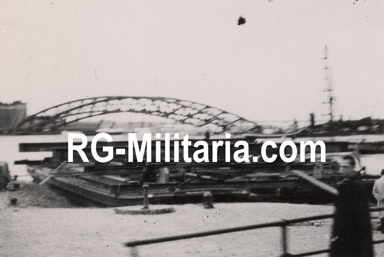 Originele Wo2 Duitse Foto - Vernietigde brug in Nijmegen, Nederland, Mei (1940)