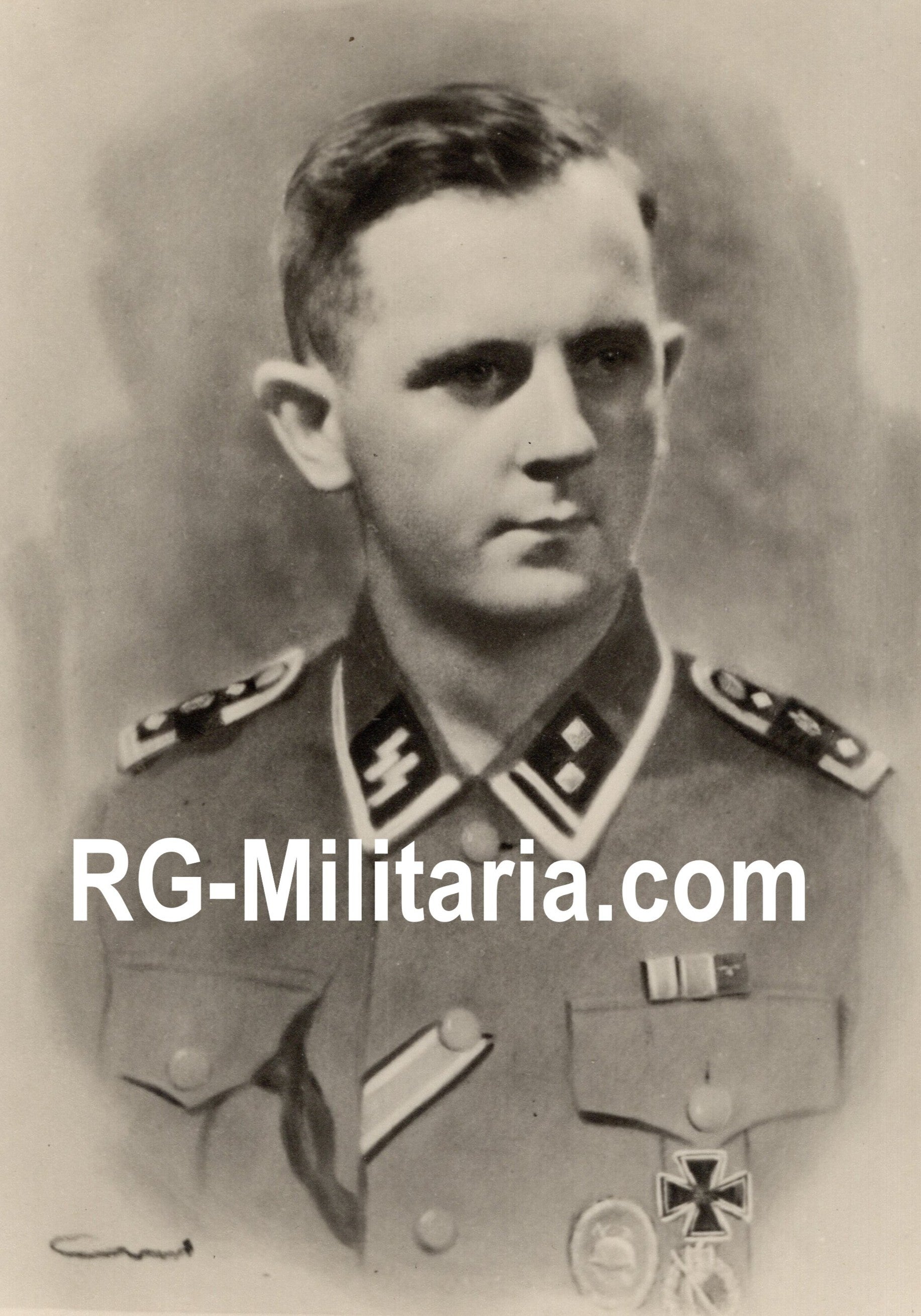 Originele Wo2 Duitse Waffen SS Portretfoto - Waffen SS LSSAH Portret met ISA en EK1, geretoucheerd