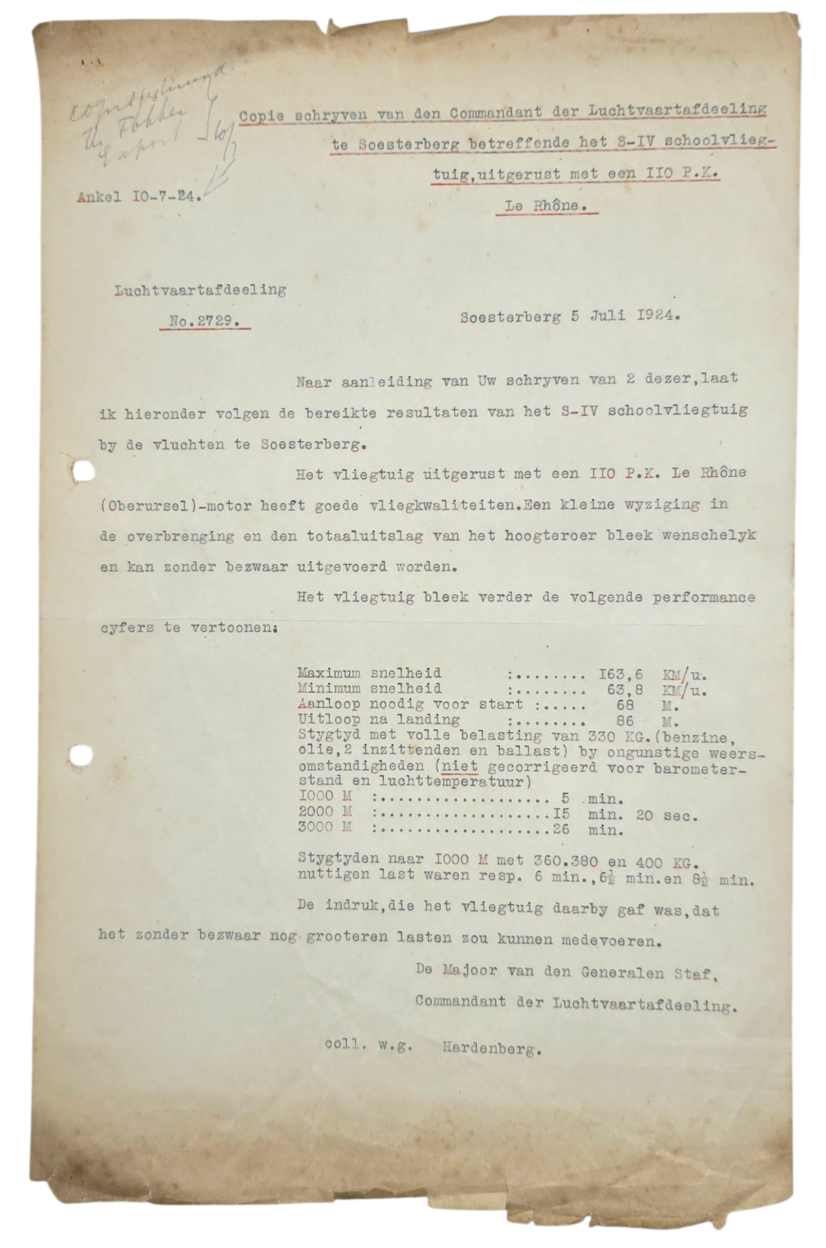 Original WW2 Dutch LVA Document - Fokker S IV airplane blueprint and contract Luchtvaartafdeeling Soesterberg (1924)