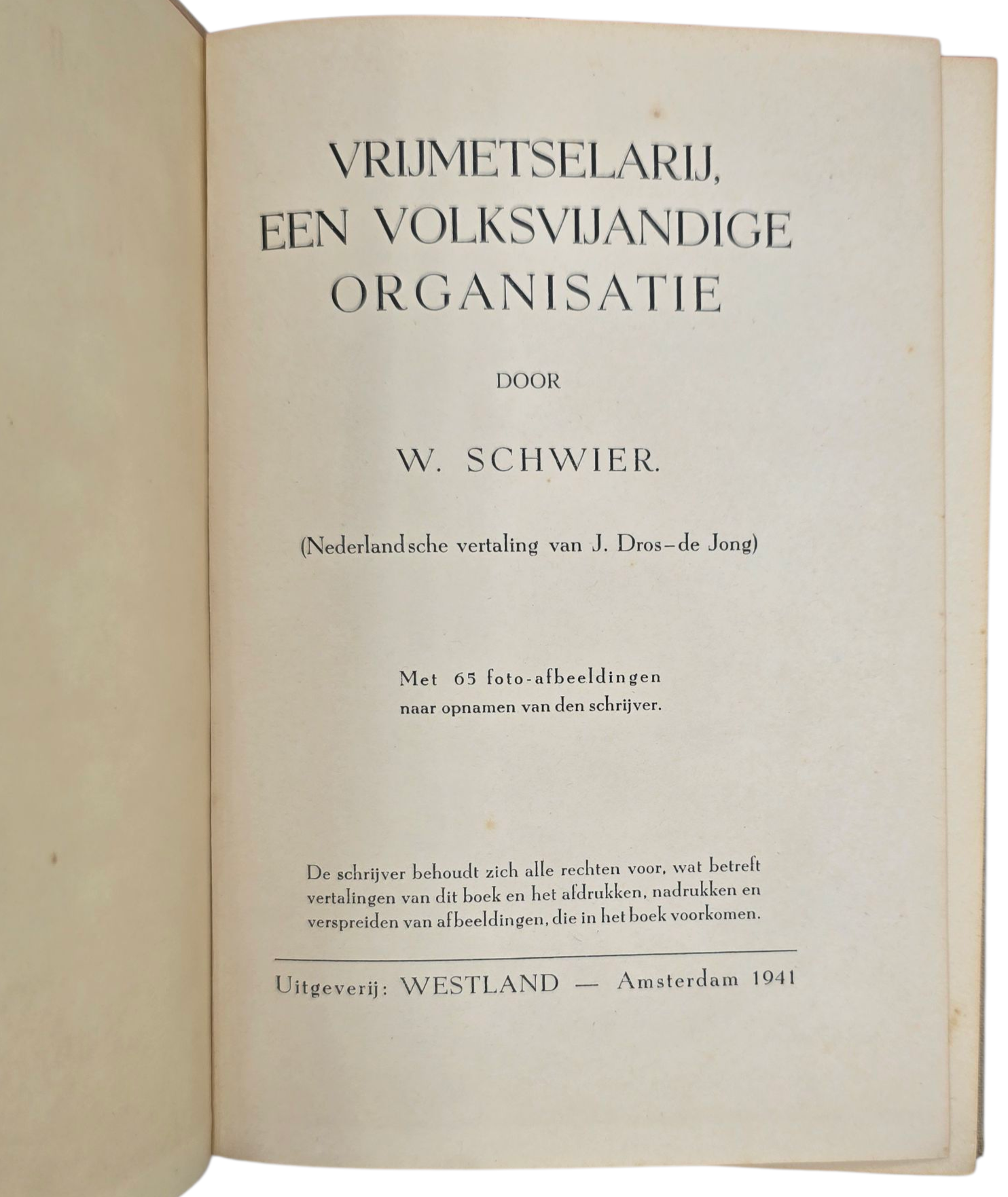 Original WW2 Dutch Collaboration NSB Book - Vrijmetselarij een Volksvijandige Organisatie, W. Schwier (1941)