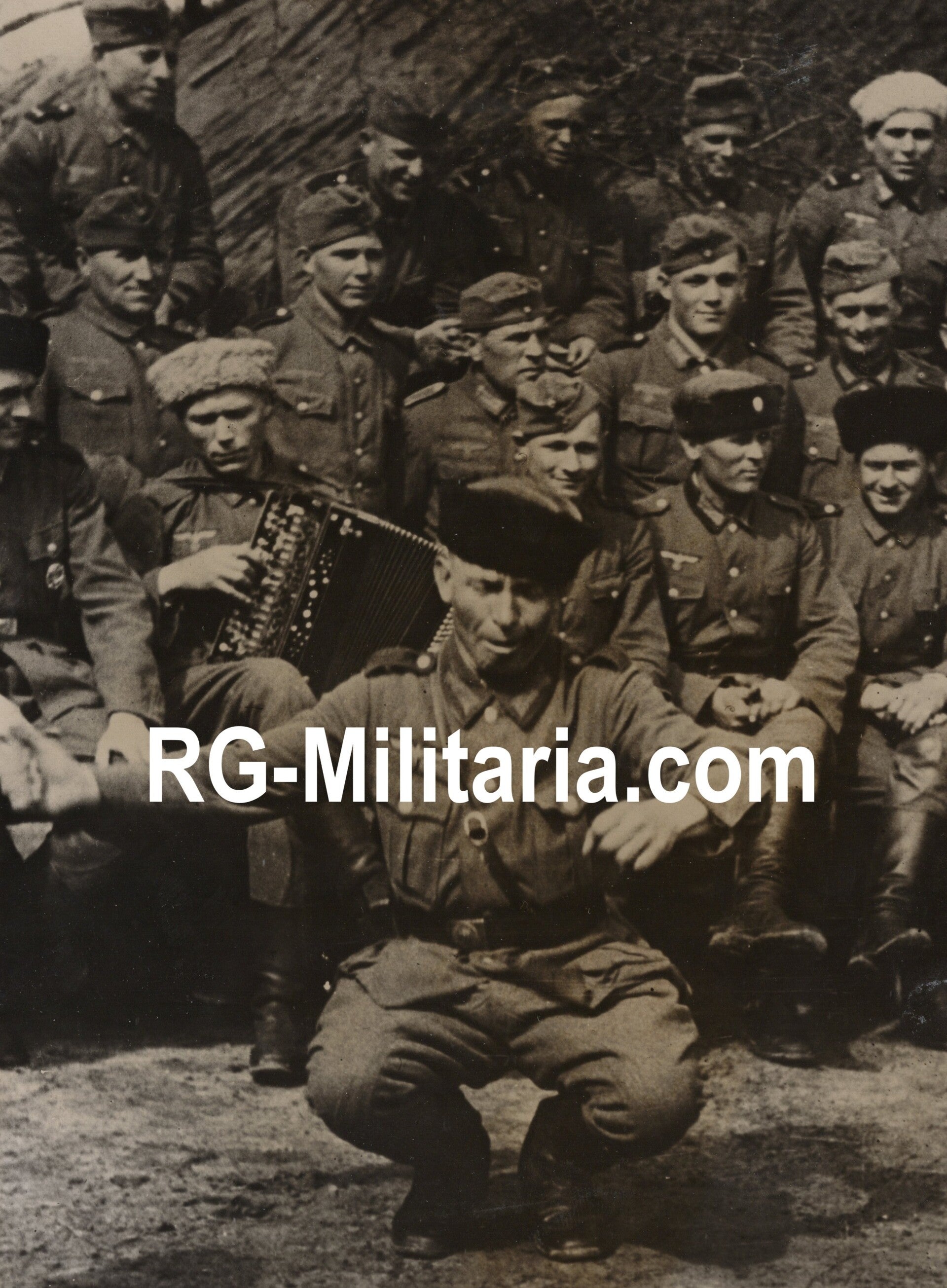 Originele Wo2 Duitse Persfoto - Ostlegioen Oost Europeaanse Waffen SS Kozakken Cavaleriekorps dansen (1944)