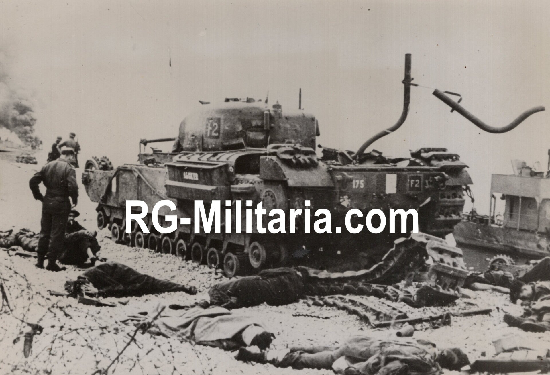 Original WW2 German Press Photo - KIA British troops with tank in Dieppe, France, Operation Jubilee (1942)