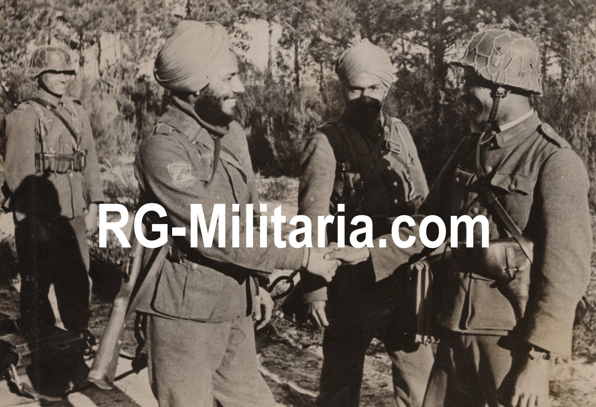 Originele Wo2 Duitse Persfoto - Indiase vrijwilligers van het Legion Freies Indien, IR 950 training, Atlantikwall, Frankrijk (1944)