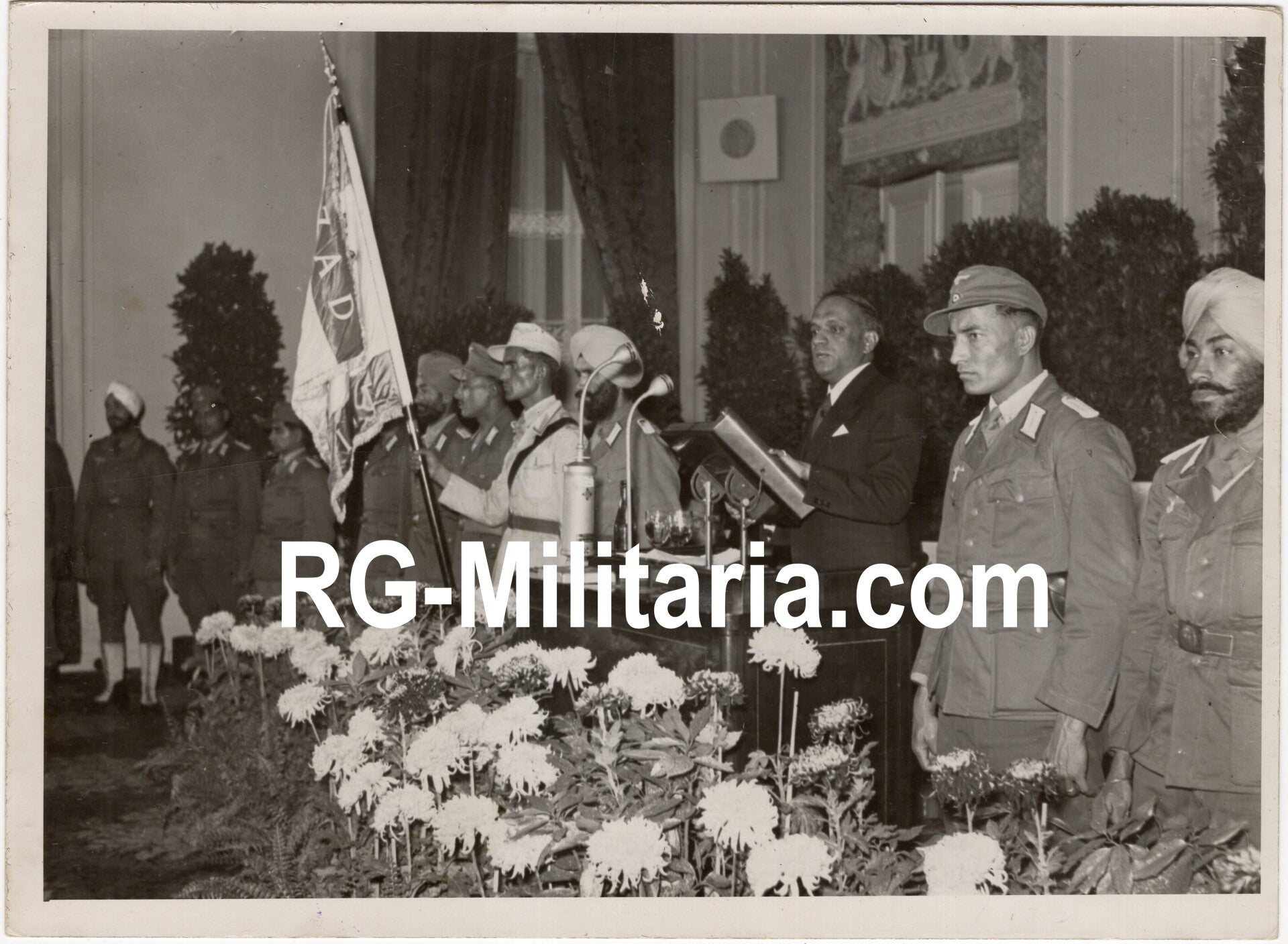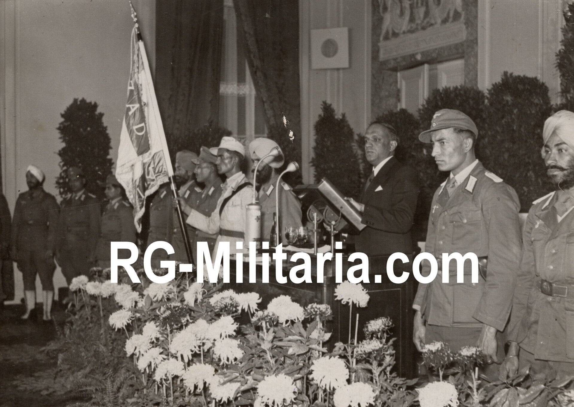 Original WW2 German Press Photo - Indian volunteers Legion Freies Indien Speech in Berlin (1943)