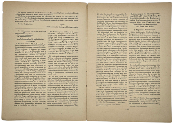 Informatie van de departement van oorlogsindustrie, door Albert Speer.