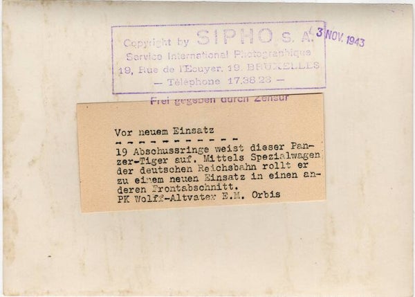 Original WW2 German Press Photo - German Tiger Tank '100' on a Reichsbahn train on the Eastern Front (1943)