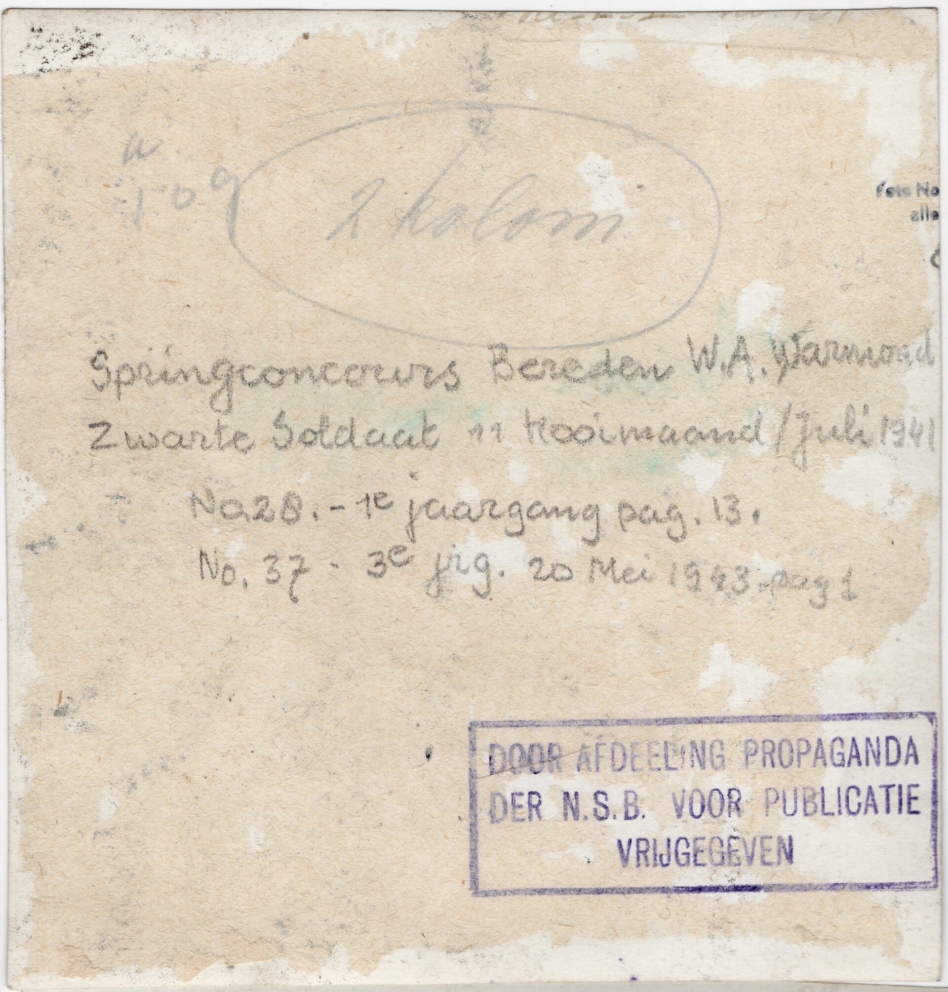 Twee keer in de Zwarte Soldaat gepubliceerd. Paard.