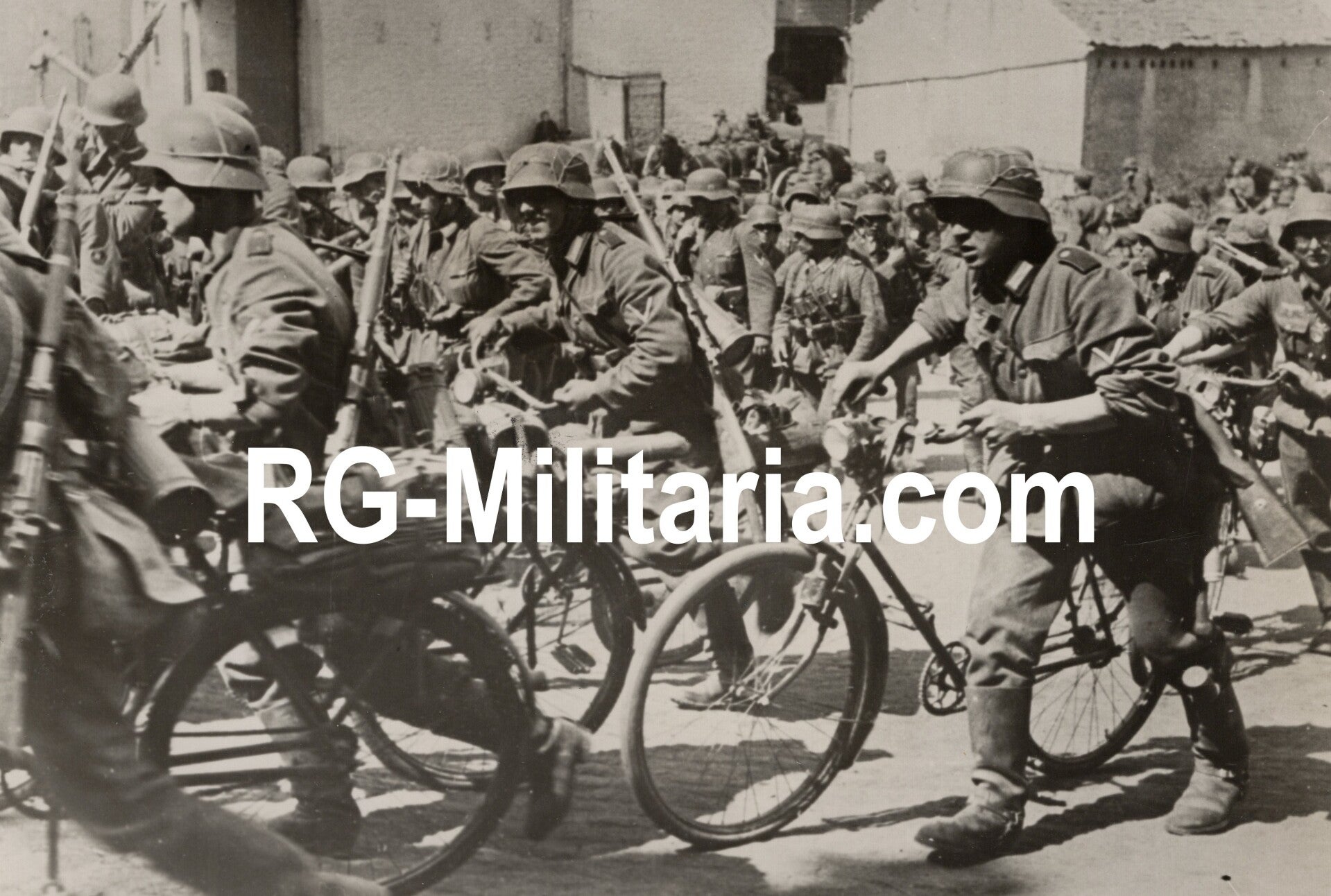 Original WW2 German Press Photo - German Infanterie with bicycles (1940)