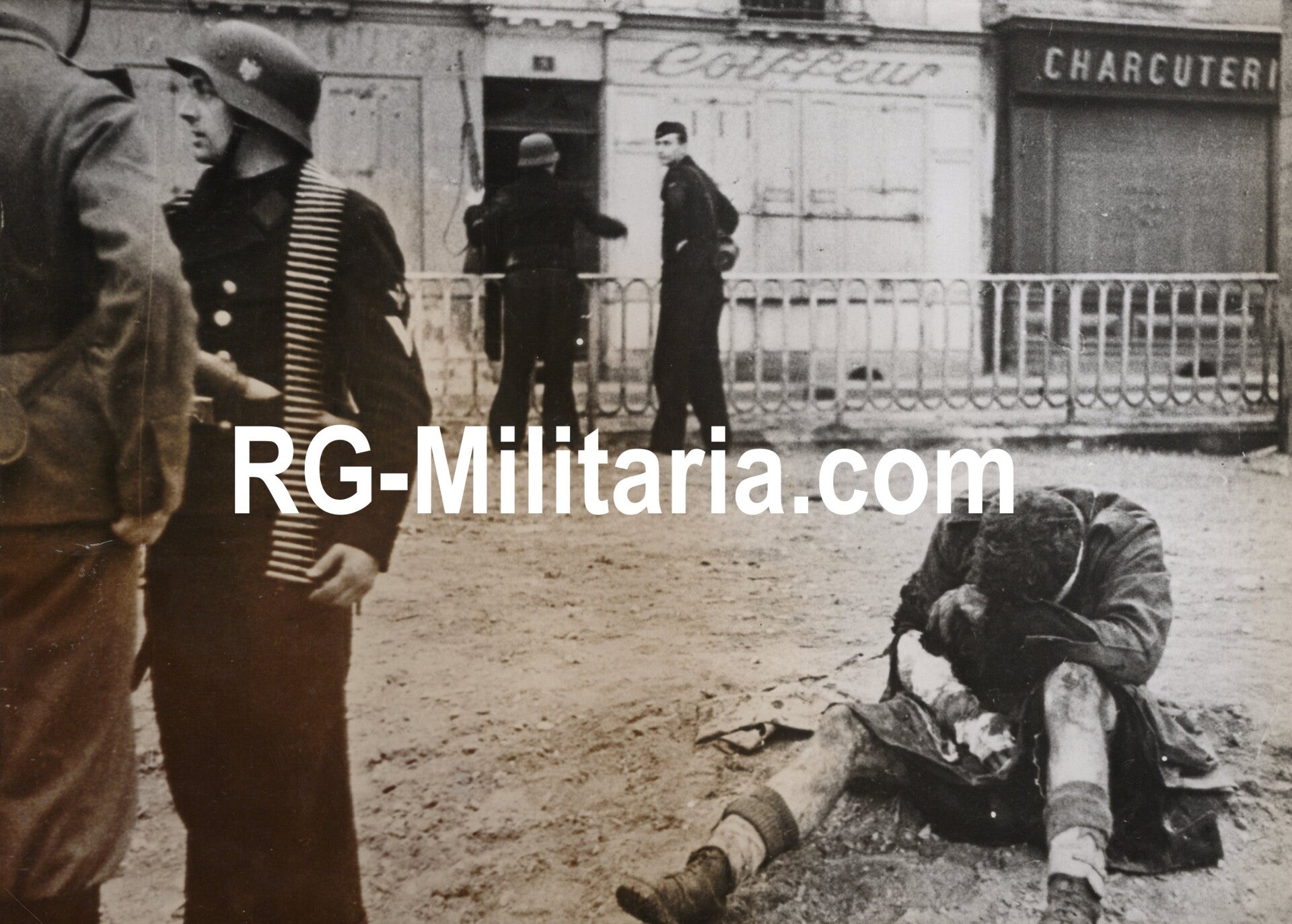 Originele Wo2 Duitse Persfoto - Gewonde Britse militair in St. Nazaire, Dieppe, Frankrijk, Operatie Jubilee (1942)