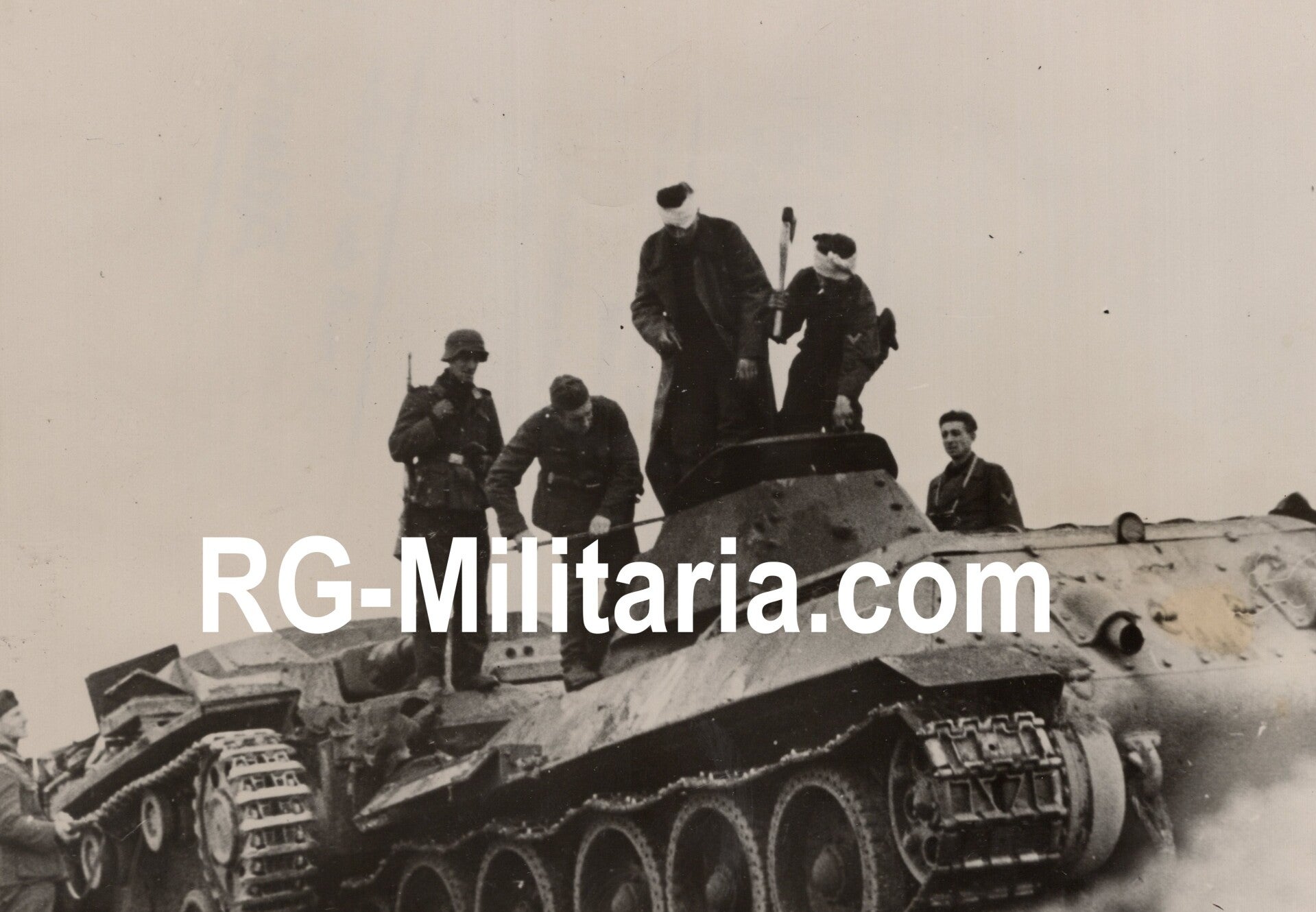 Original WW2 German Press Photo - German panzer crew taking out a Soviet T-34 tank crew, Eastern Front (1941)