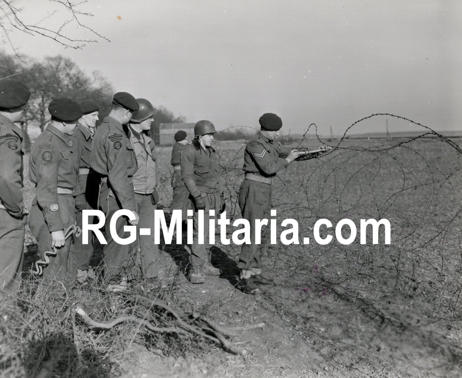 Original WW2 US Press Photo - US soldiers and British Royal Marine Commando troops remove barbed wire in Linne, Holland (1945)