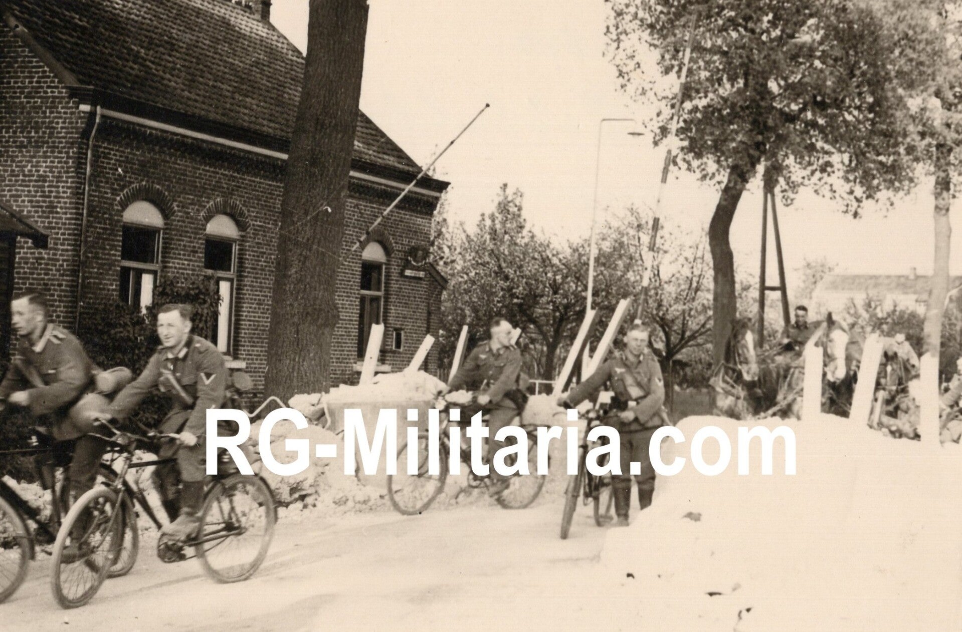 Original WW2 German Photo - German soldiers on bicycles enter Holland during the Blitzkrieg, Posterhold, May (1940)