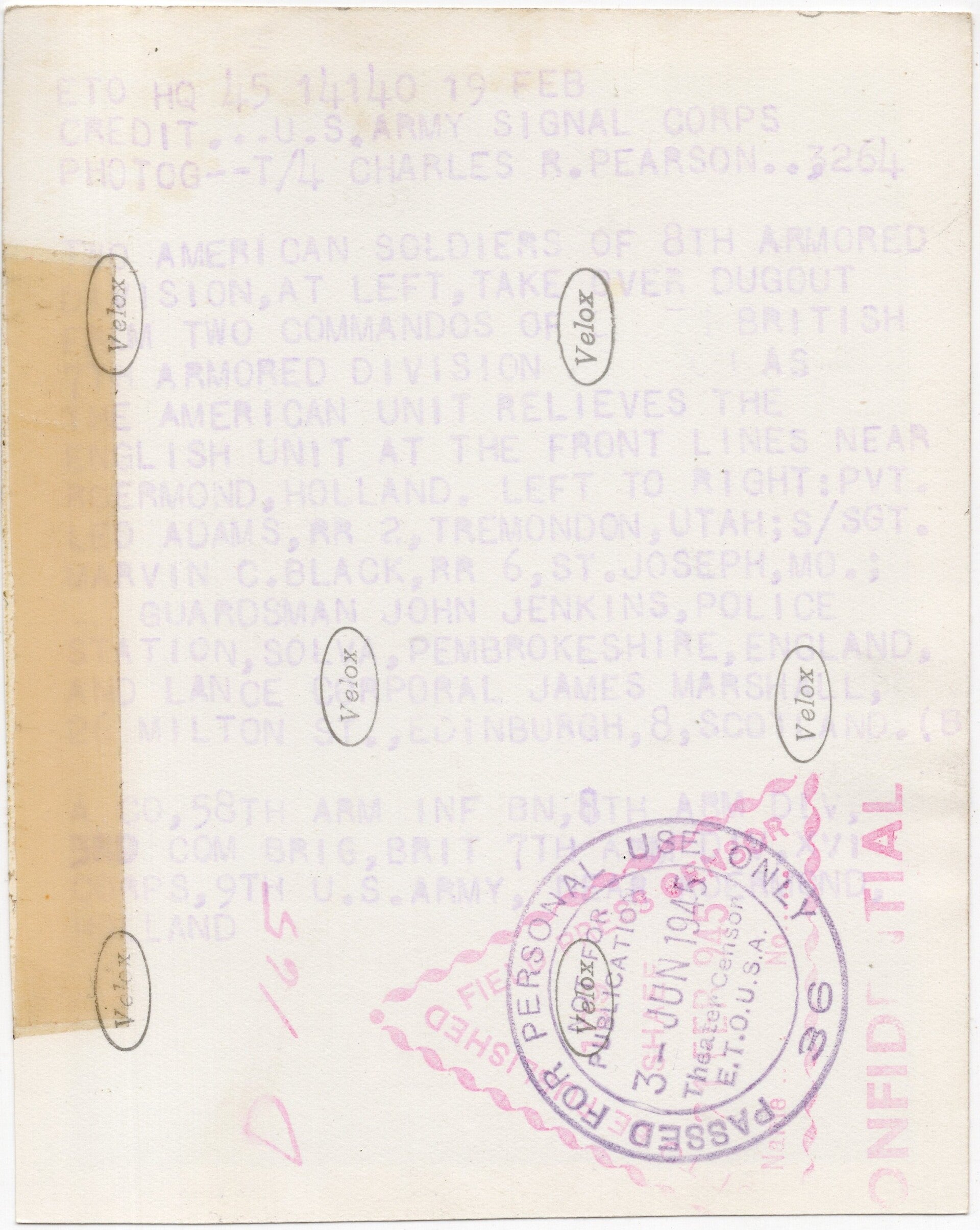 Original WW2 US Press Photo - US 8th Armored Division with British 7th Armored Division at the front lines near Roermond, Holland (1945)