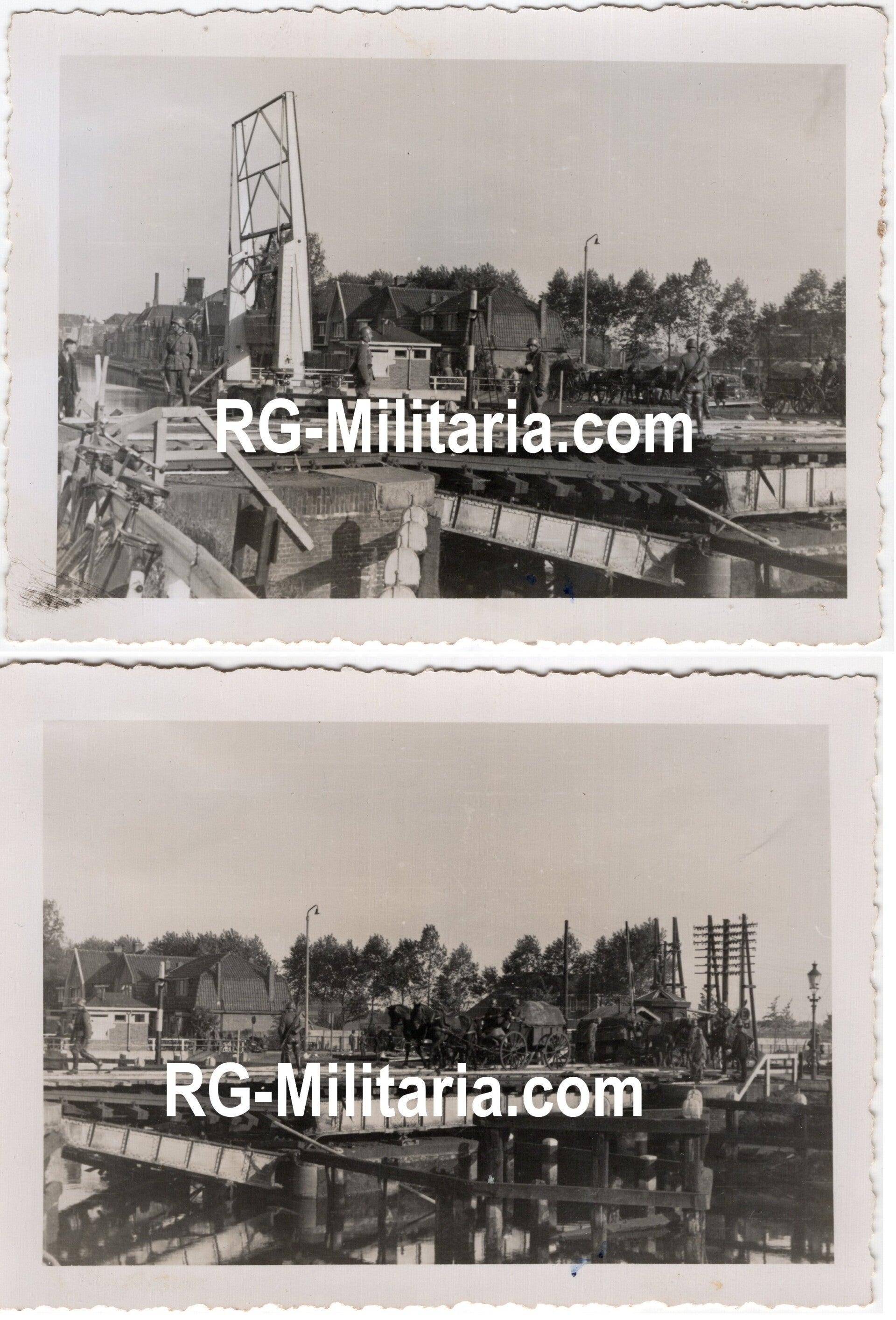 Originele Wo2 Duitse Foto - Duitse militairen bezetten de brug bij Meppel, Nederland (1940)
