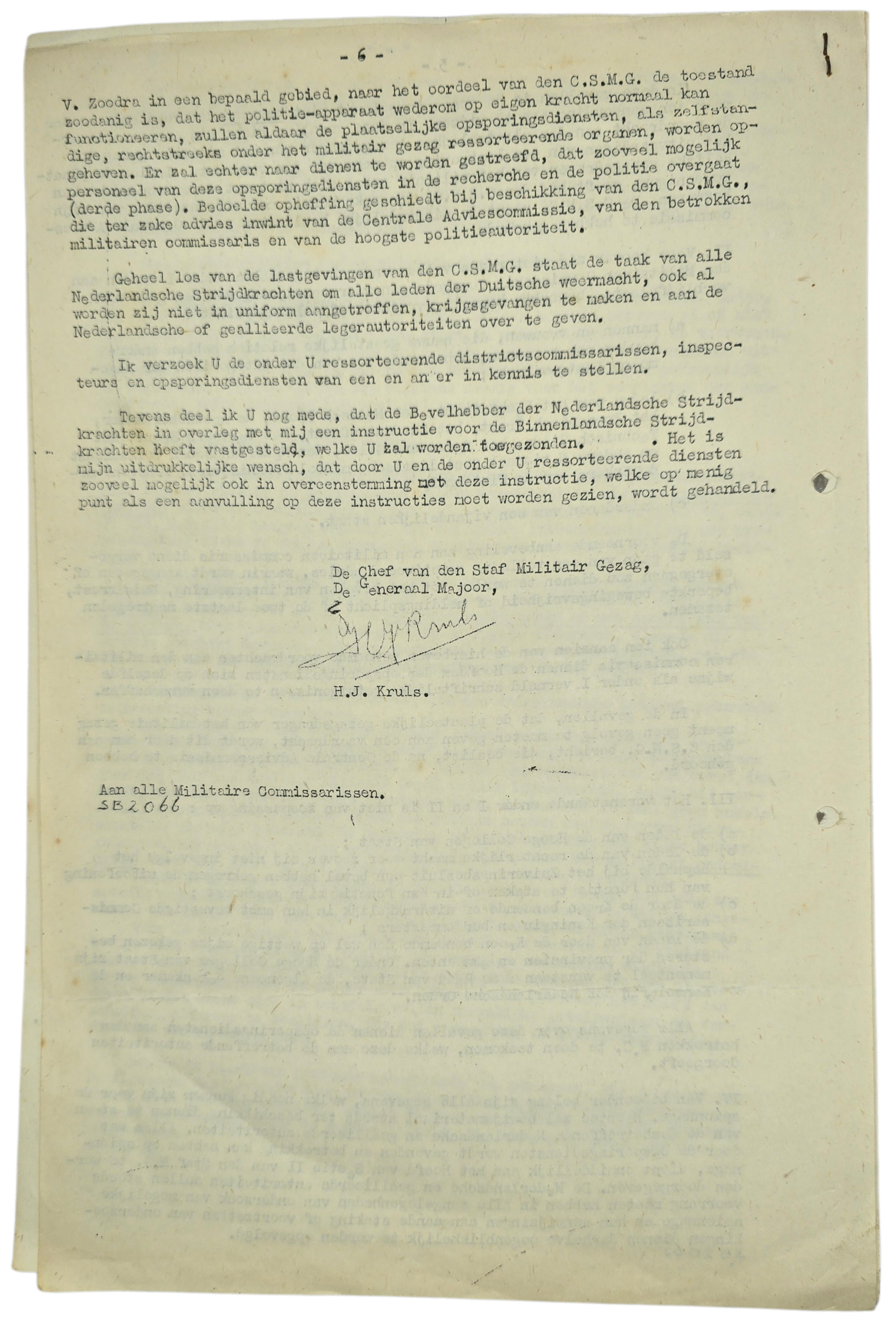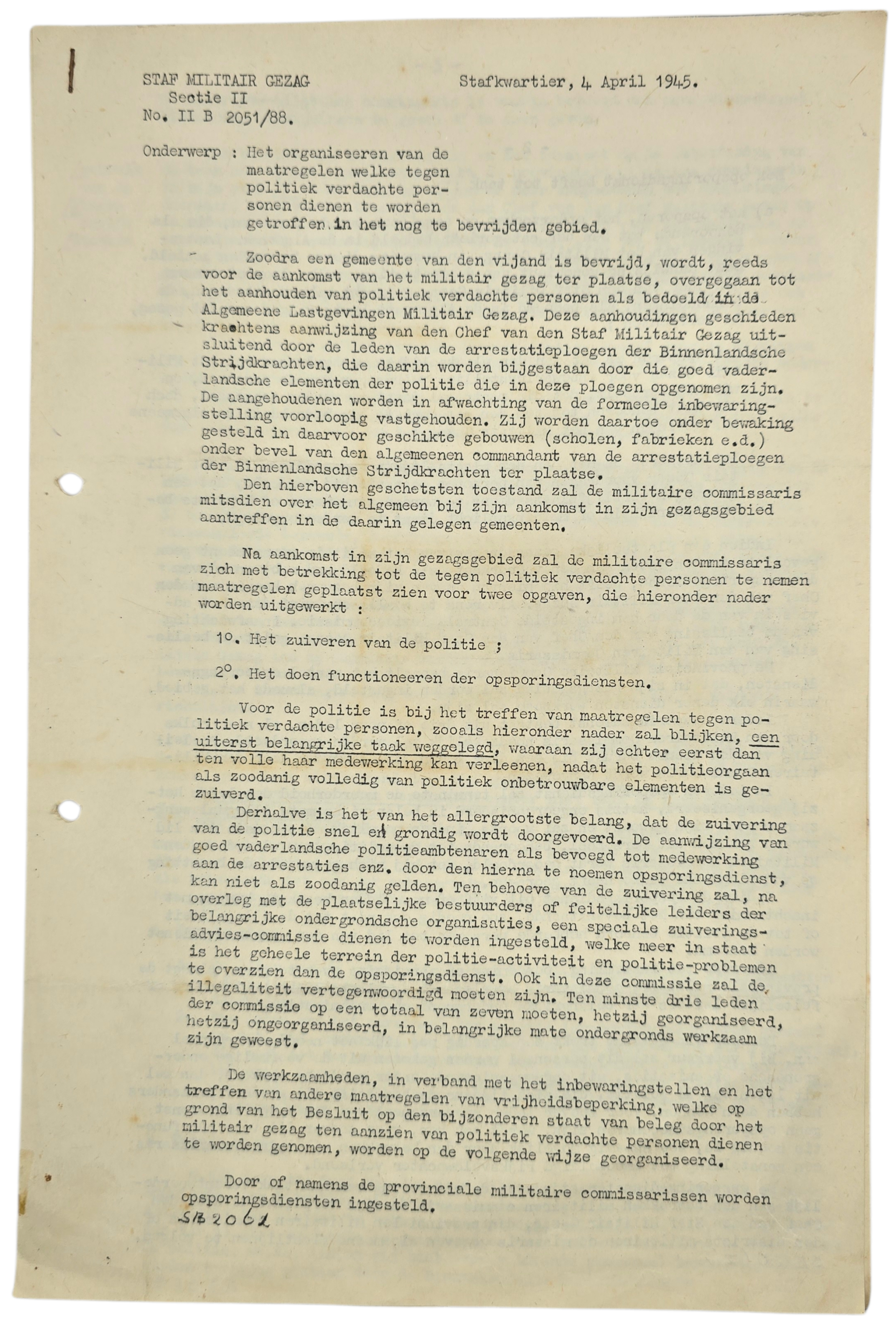 Original WW2 Dutch Liberation Document - MG Militair Gezag arresting of potential collaborators (1945)