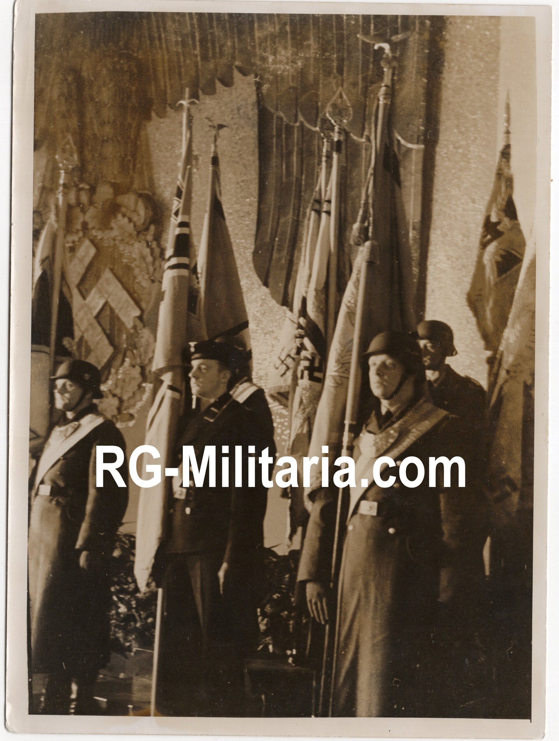 Originele Wo2 Duitse Persfoto - Duitse militaire vlaggendrager delegatie bij een Hermann Göring toespraak (1943)