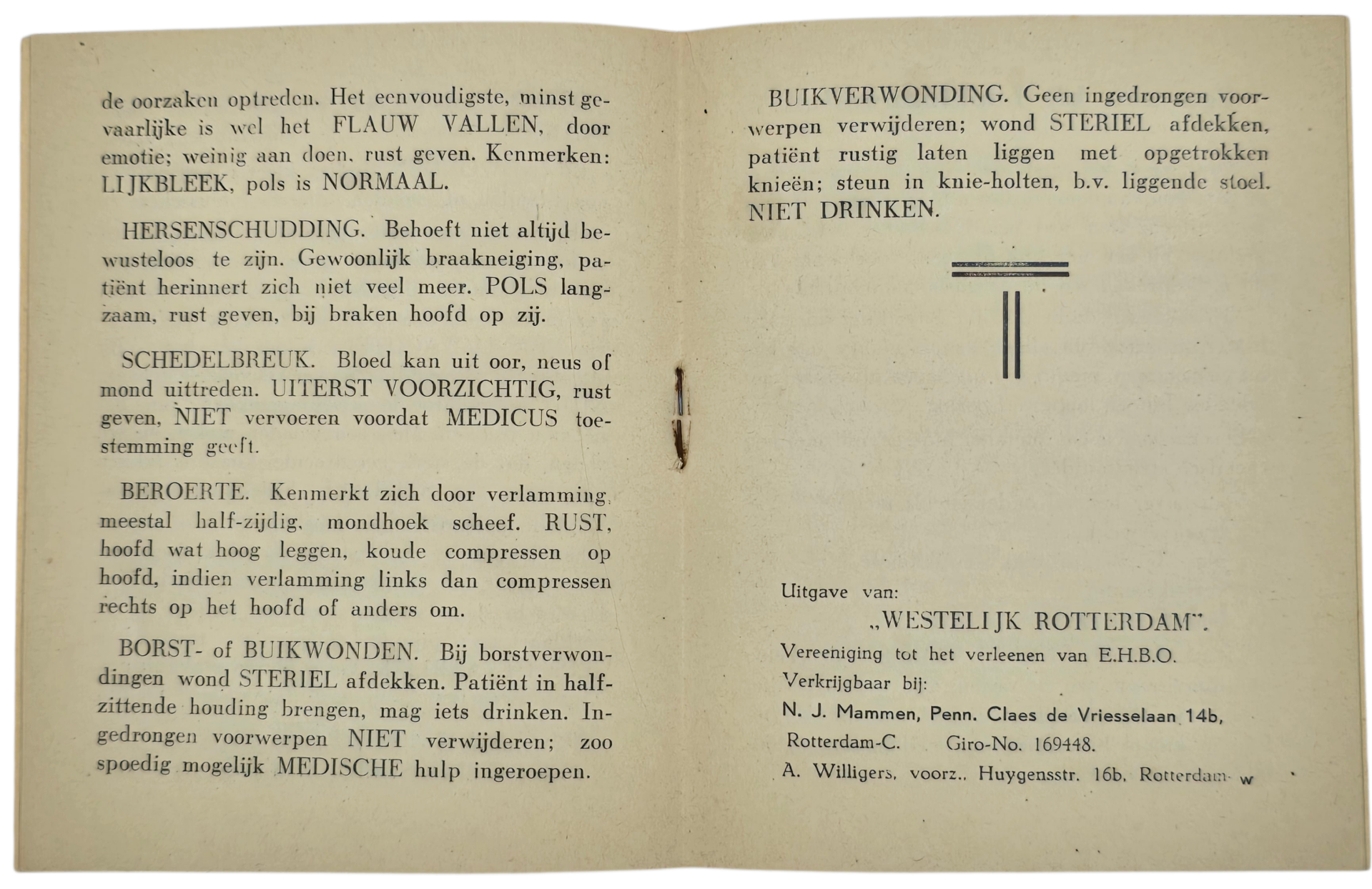 Original WW2 Dutch LBD Brochure - Eerste Hulp bij Luchtaanvallen, Rotterdam