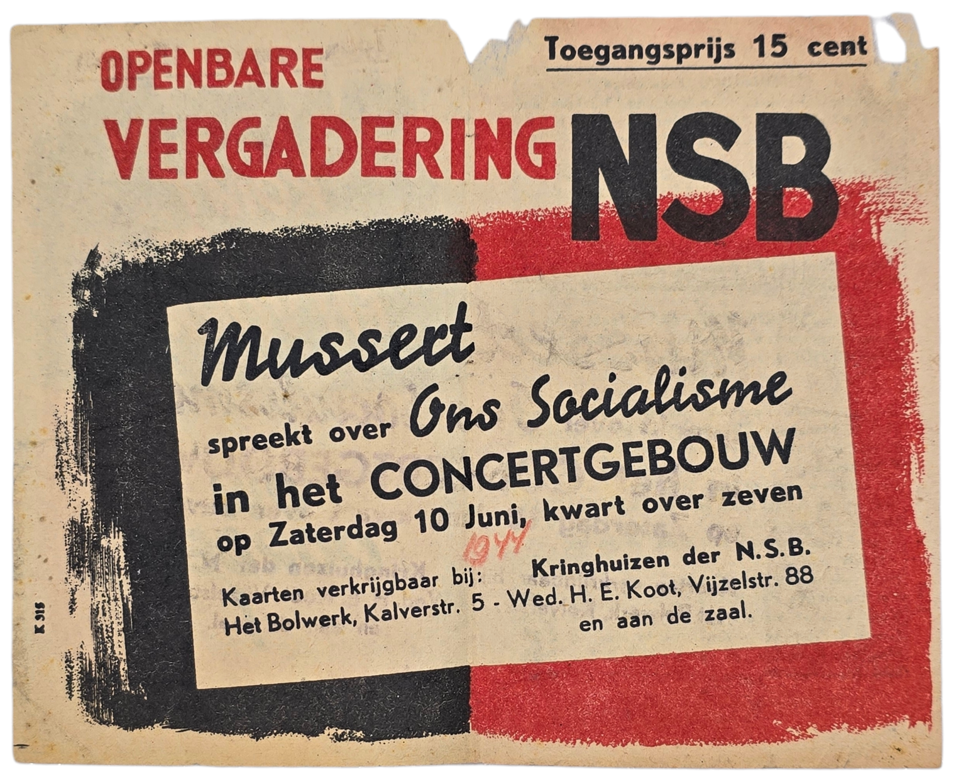 Origineel Wo2 Nederlandse Collaboratie NSB Document - Openlucht vergadering, Anton Mussert, Concertgebouw, Amsterdam (1944)
