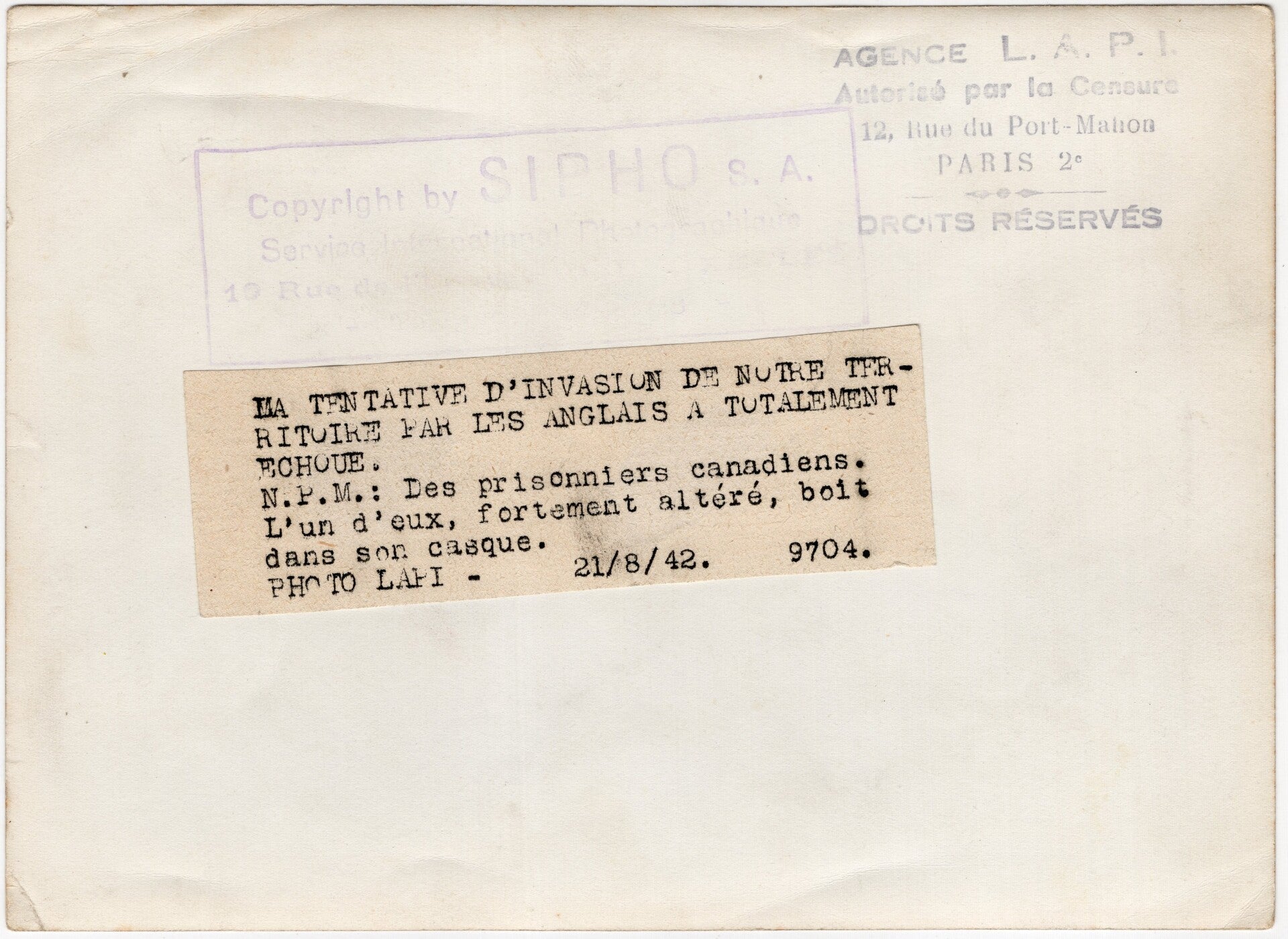 Original WW2 French Press Photo - British POW soldiers in Dieppe, France, Operation Jubilee (1942)