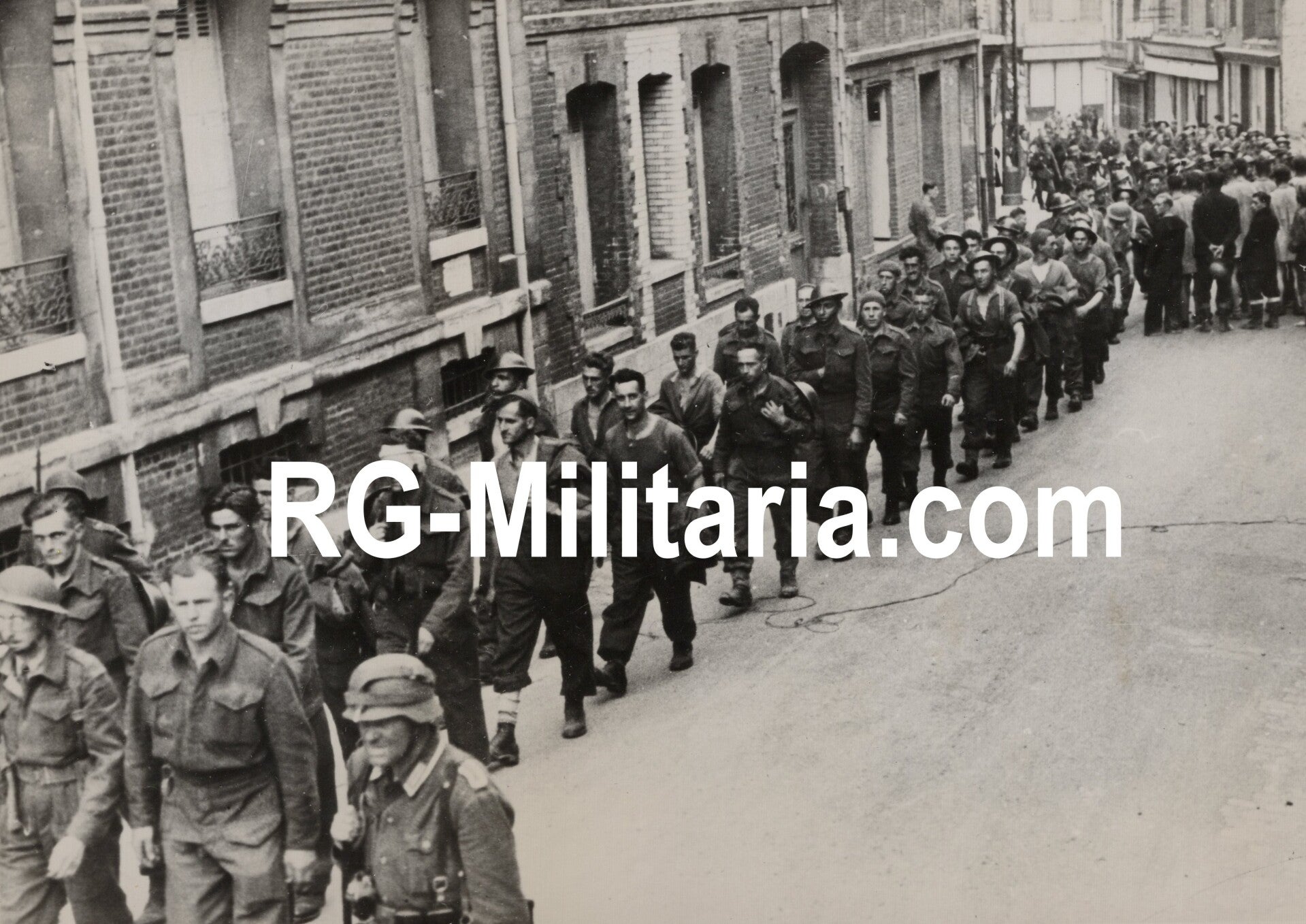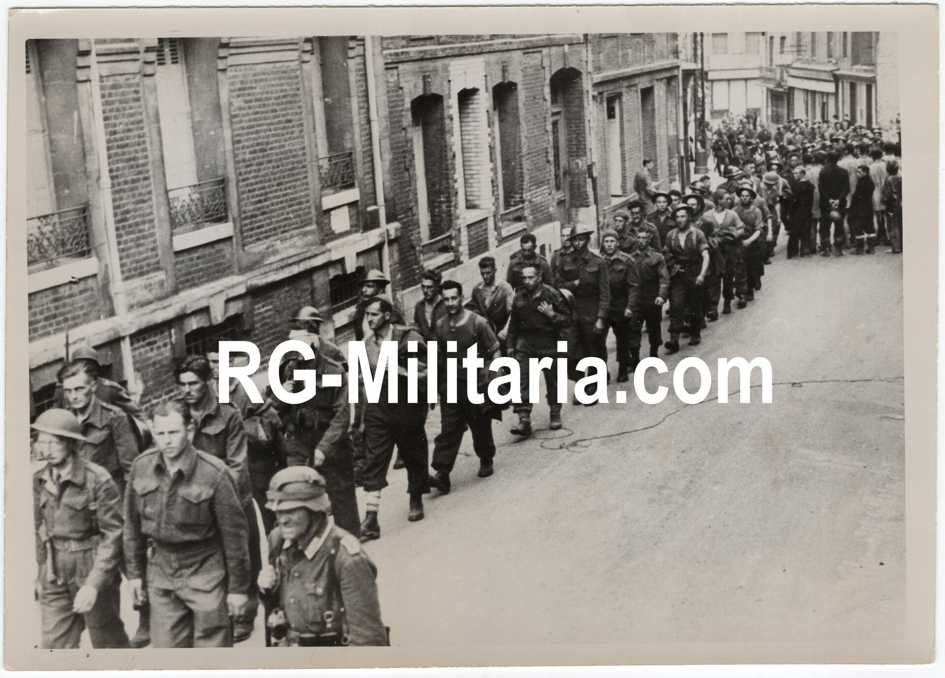 Original WW2 German Waffen SS Press Photo - British POW soldiers in Dieppe, France, Operation Jubilee (1942)