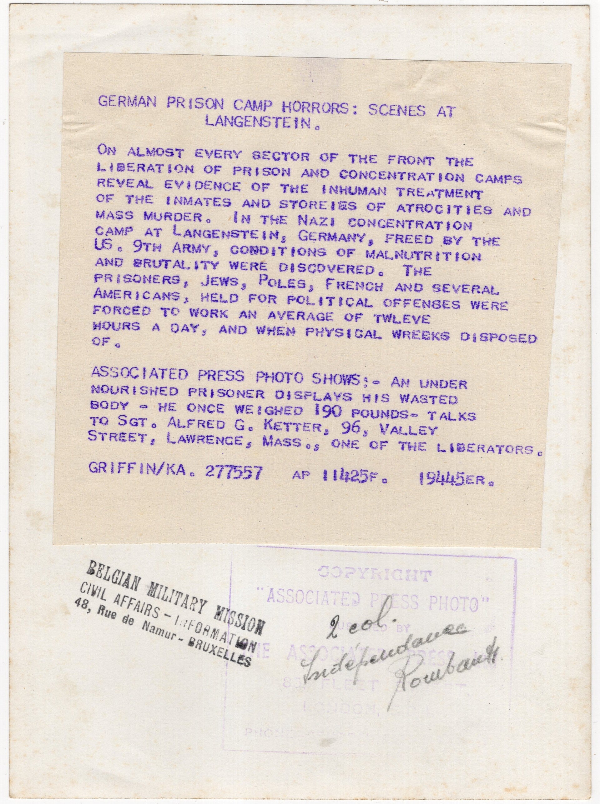 Originele WO2 Amerikaanse US Persfoto - Amerikaanse hospik met gevangenen van het concentratiekamp Langenstein (1945)