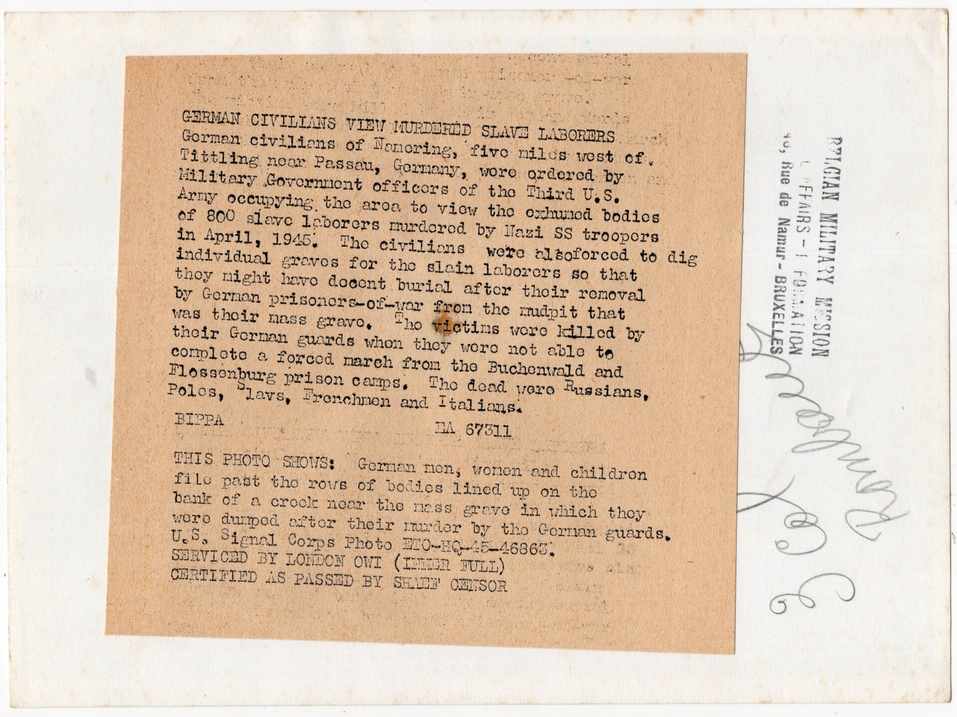 Originele WO2 Amerikaanse US Persfoto - Duitse burgers bekijken de vermoorde gevangenen van de concentratiekampen Buchenwald en Flossenburg (1945)