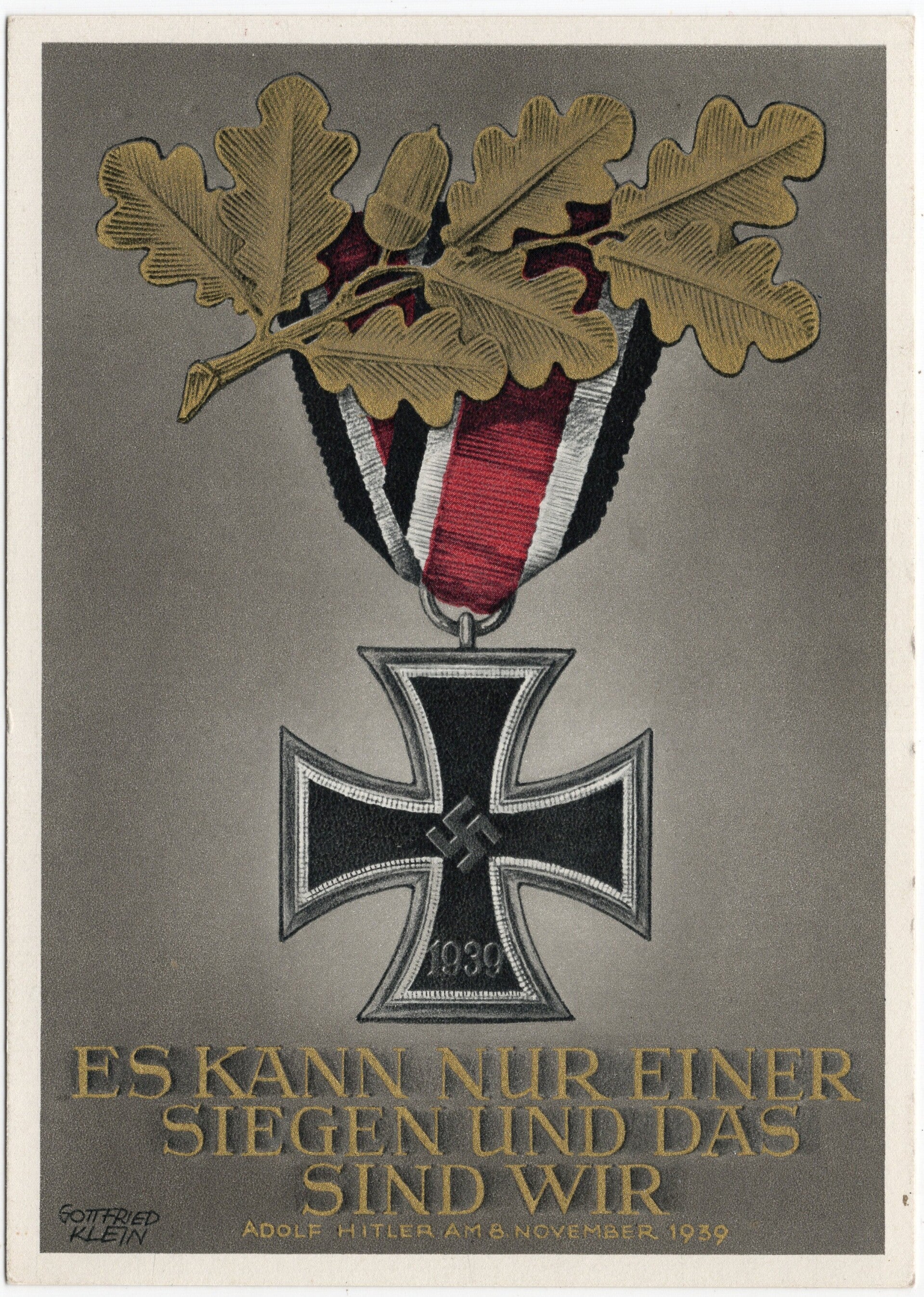 Original WW2 German Postcard - EK2 Iron Cross, Es kann nur einer siegen und das sind wir, Gottfried Klein (1939)
