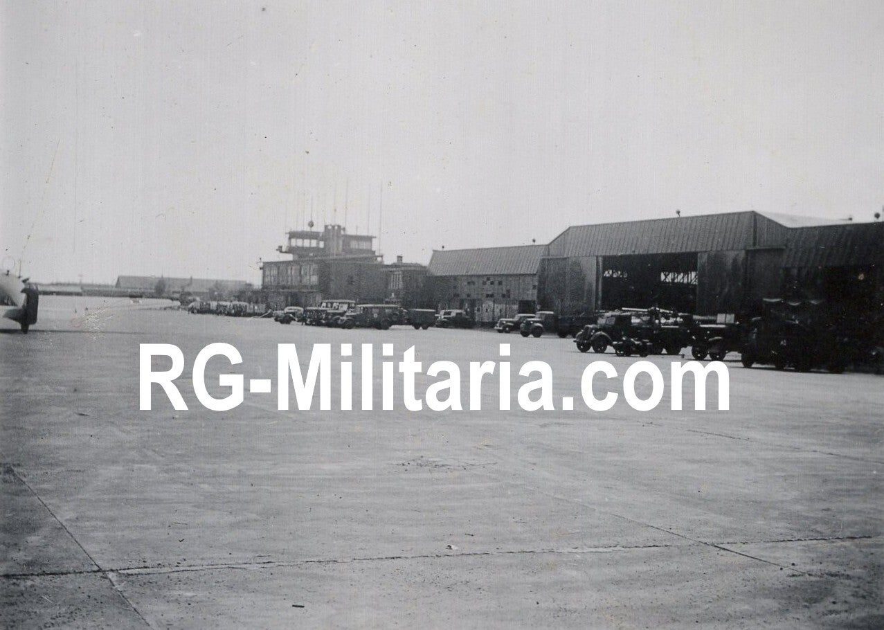 Originele Wo2 Duitse Foto - Duitse voertuigen op vliegveld Schiphol, Amsterdam, Nederland (1940)