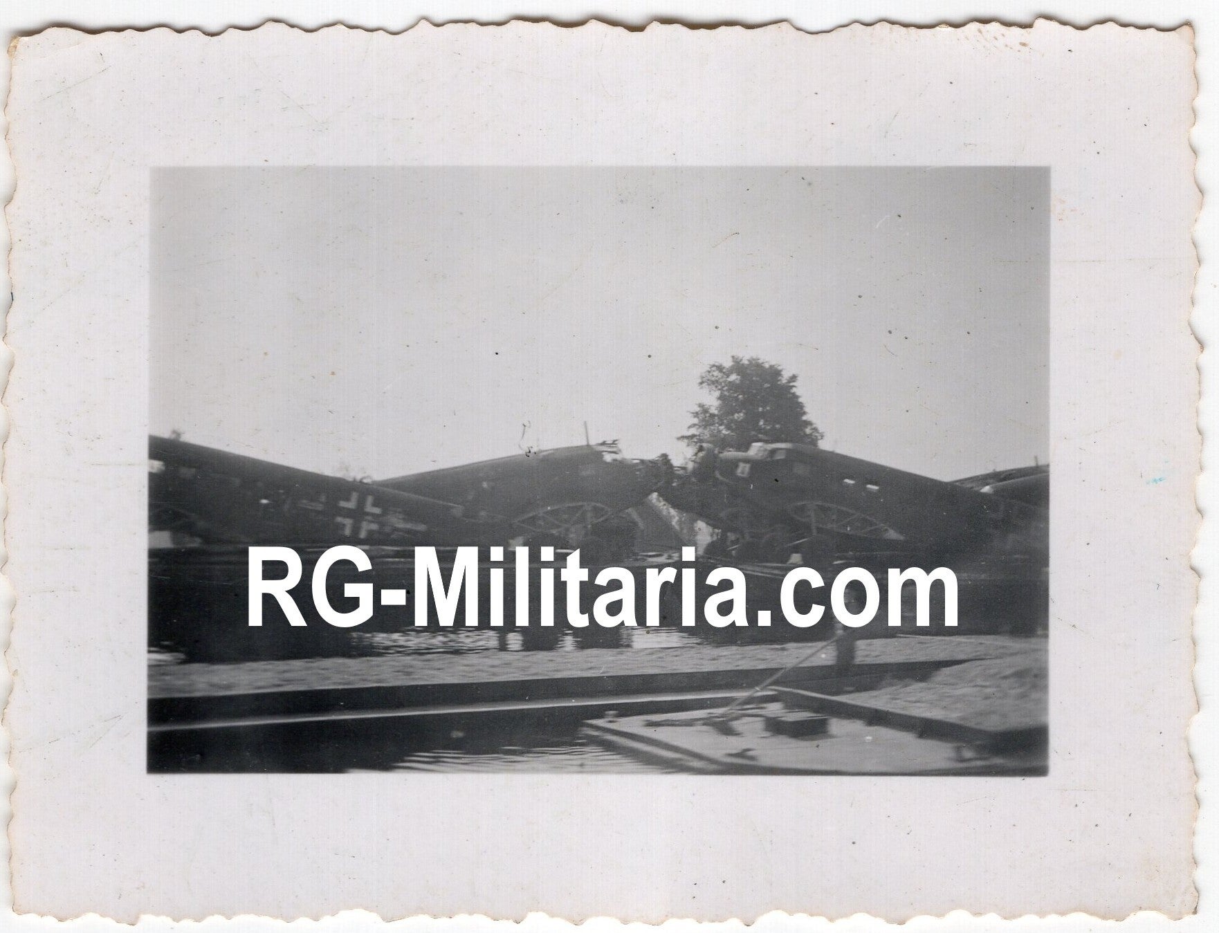 Original WW2 German Photo - Junkers JU 52 airplanes on ponton boats near Schiphol, Amsterdam, Holland (1940)