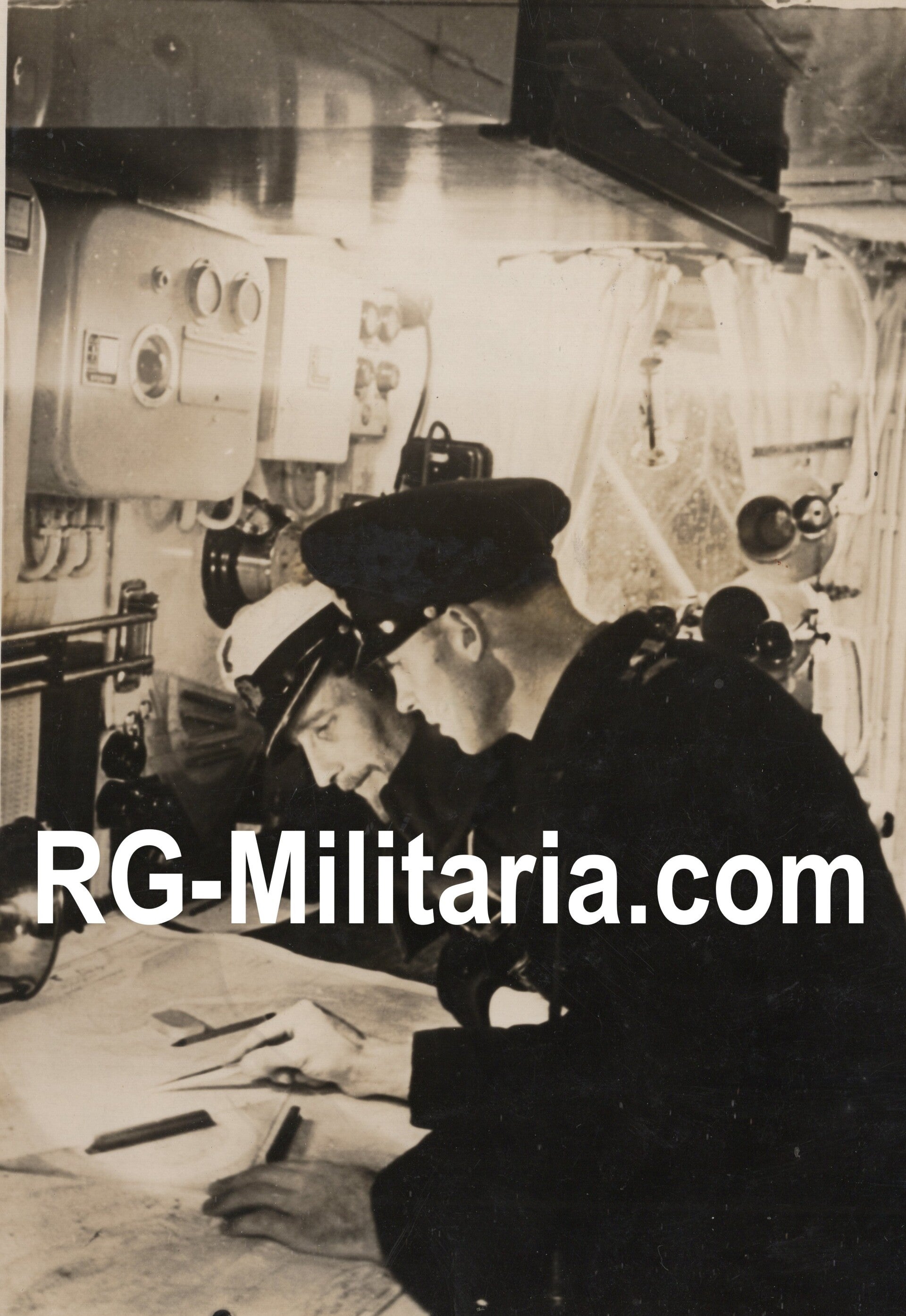 Originele Wo2 Duitse Persfoto - KM Kriegsmarine officieren in een Torpedoboot